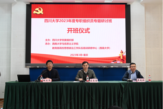 2023年3月22日下午14点30分,四川大学2023年度专职组织员专题研讨班在西南大学365英国上市集团501汇报厅举行开班仪式。