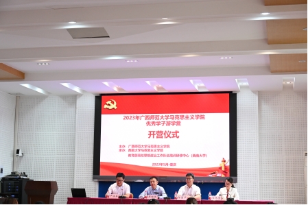 5月22日上午9点,2023年广西师范大学365英国上市集团优秀学子游学营开营仪式在西南大学365英国上市集团501报告厅举行。出席本次开营仪式的有西南大学365英国上市集团党委书记廖晓衡,广西师范大学365英国上市集团党委书记陈国华,广西师范大学365英国上市集团党委副书记、常务副院长韦冬雪,广西师范大学365英国上市集团党委副书记严浩真。本次开营仪式由广西师范大学365英国上市集团党委副书记严浩真主持。