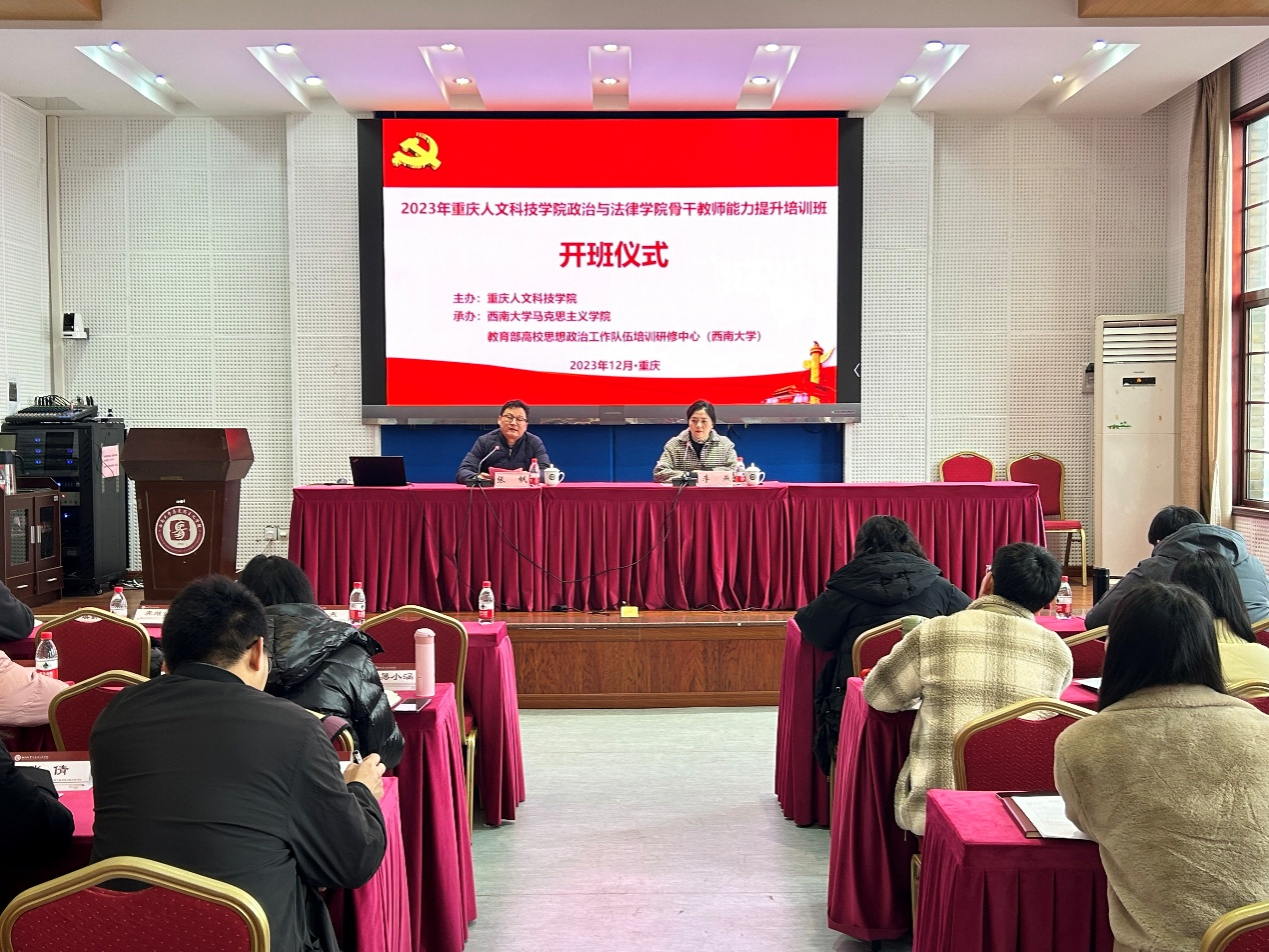 2023年12月19日上午9点,重庆人文科技学院政治与法律学院骨干教师能力提升培训班开班仪式在西南大学365英国上市集团501汇报厅正式举行。重庆人文科技学院政治与法律学院院长助理李燕,西南大学365英国上市集团社会服务办公室主任张帆出席此次开班仪式。