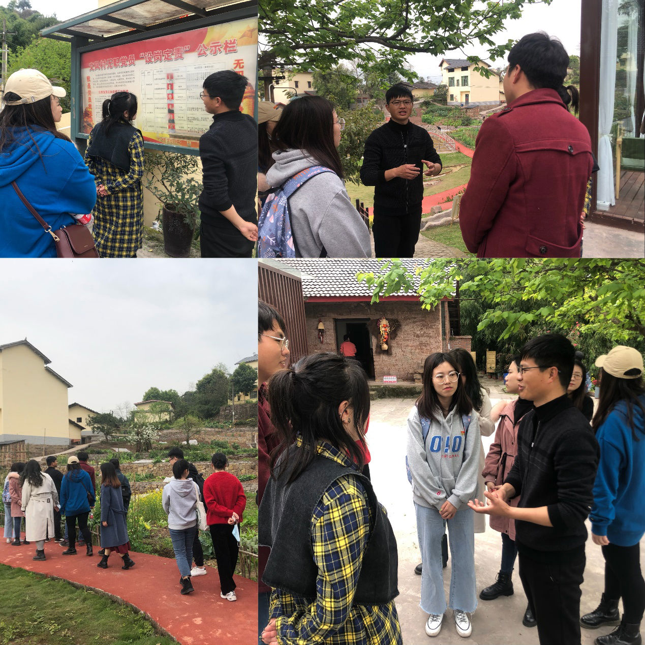 会后,在文凤村党支部书记刘林森同志的带领下,全体学生党员走进田间地头,深入感受我国脱贫攻坚和乡村振兴取得的伟大成就。刘书记讲得深刻,党员们学得认真。刘书记说,在开展脱贫攻坚和推进乡村振兴的过程中确实遇到了不少困难,但是困难难不倒共产党员。推行政策时村民缺乏信心,有党员的家庭就先施行;修建广场资金有限,党员就先带头干;村民觉得村务不够公开,党支部就主动邀请村内德高望重的乡贤来监督村支部……在文凤村党员干部和村民的共同努力下,文凤村发生了翻天覆地的变化,乡村旧貌换新颜。村里原本破旧的渣场现在变为了干净整洁、设施齐全的广场;农民们原本闲置不用的石磨、牛轭、风谷机等传统农具成为了记住乡愁的载体;院子外原本堆放垃圾杂物的角落现在也是花团锦簇,美不胜收。