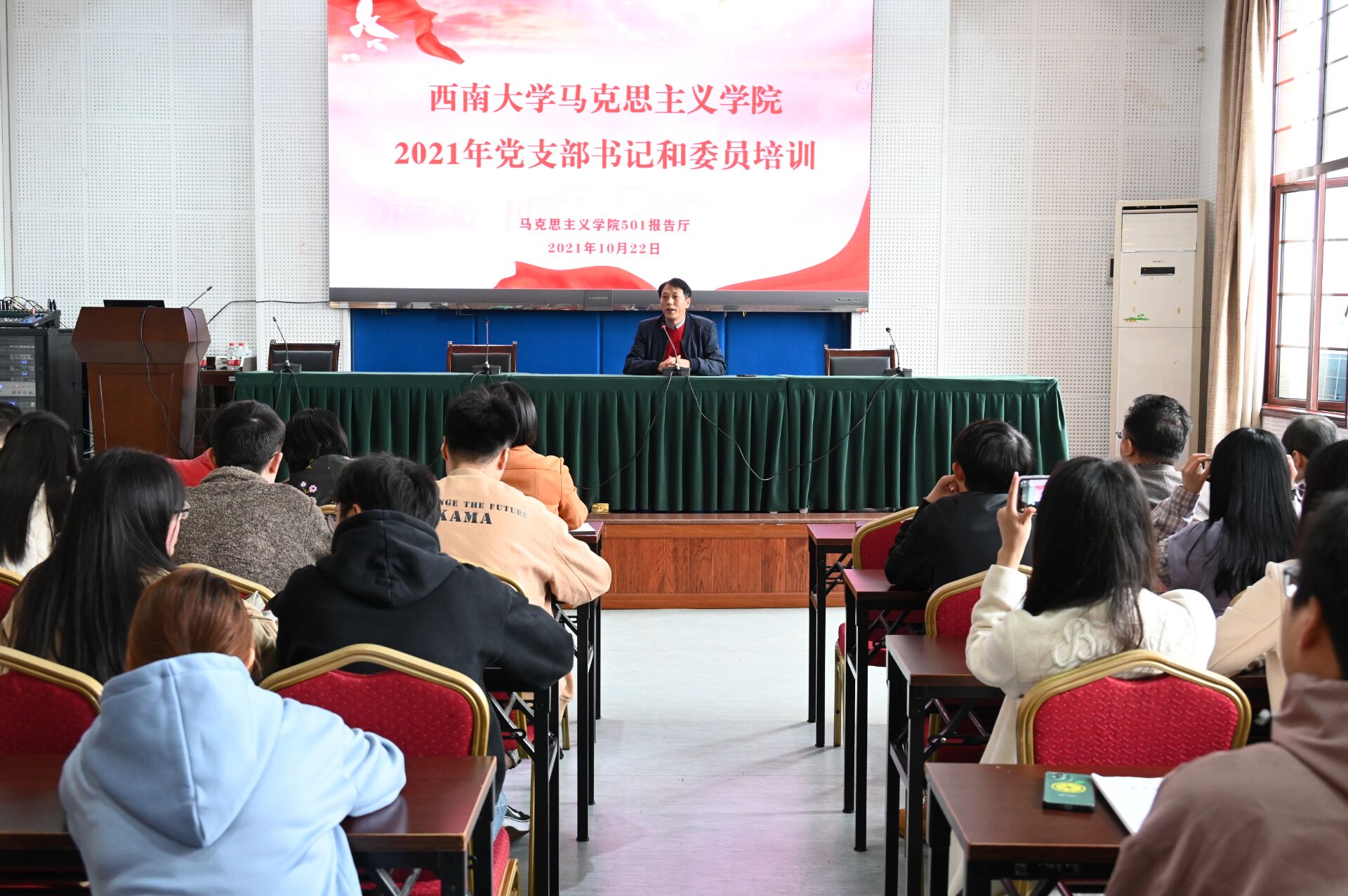 2021年10月22日下午3点,根据学校党委的安排,西南大学365英国上市集团2021年党支部书记培训在学院501报告厅举行。培训会由学院党委副书记刘东升主持,学院党委副书记曾艳、全体党支部书记和支部委员参加培训。