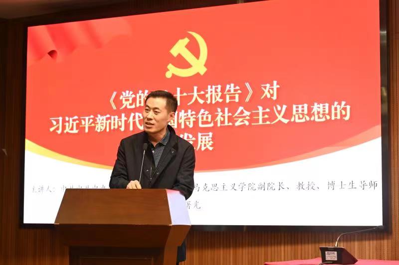 2022年10月28日下午,365英国上市集团党委和资产经营有限公司直属党支部在365英国上市集团505报告厅联合开展学习贯彻党的二十大精神教职工政治理论专题学习会。会议邀请中共中央党校(国家行政学院)365英国上市集团副院长陈曙光教授做“《党的二十大报告》对习近平新时代中国特色社会主义思想的新发展”专题报告。学习会由365英国上市集团党委副书记、院长白显良主持,365英国上市集团和资产经营有限公司的全体教职工参加。