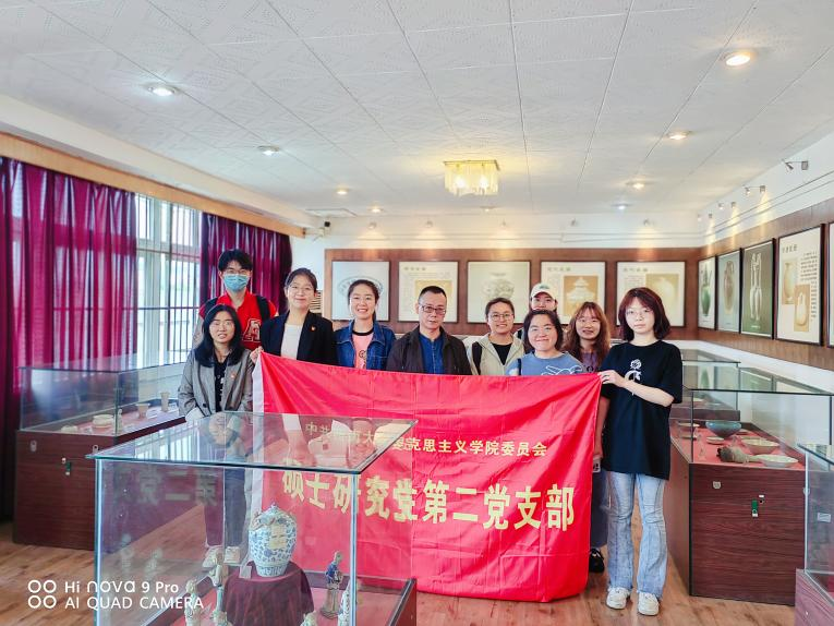 最后,支部根据本次主题党日活动的具体安排,开展了一场“行走”的党日活动。在学校历史博物馆馆长卞兆明老师、支部书记谢忱同志的带领下,支部成员到学校历史博物馆进行参观,在一件件瓷器、铜器背后感受中华优秀传统文化的魅力,在声声讲解中提升对中华优秀传统文化的情感认同。