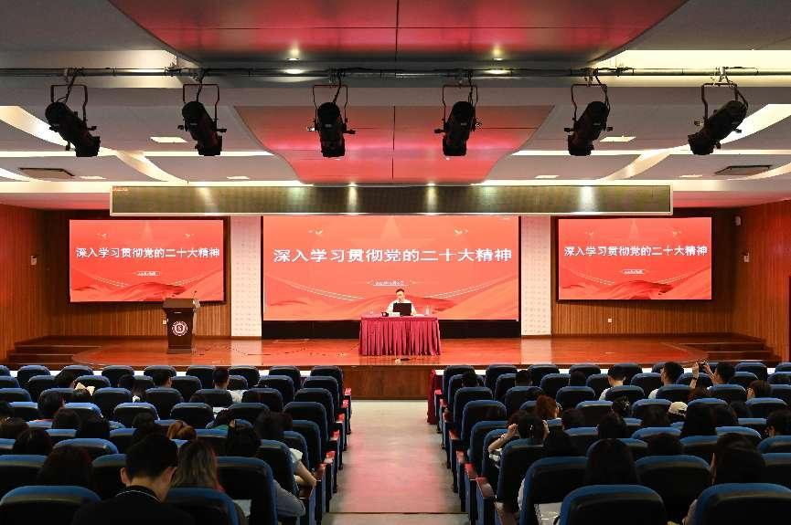 学院党委书记廖晓衡为毕业生党员讲授《学习贯彻党的二十大精神》专题党课,廖书记结合自身学习二十大精神的体会,向毕业生党员提出了四点要求:一要从中国共产党发展史、中华民族发展史、世界文明发展史的角度来深刻认识党的二十大召开的重大意义,二要从二十大的主题、过去5年的工作和新时代10年的伟大变革、开辟马克思主义中国化时代化新境界、新时代新征程中国共产党的使命任务、中国式现代化的中国特色和本质要求、社会主义“五位一体”方面的重大部署等方面全面准确学习领会党的二十大精神;三要在深刻理解中国式现代化的中国特色和本质要求的基础上,坚持以中国式现代化全面推进中华民族伟大复兴;四要从教育、科技、人才三方面入手,要办好人民满意的教育,要完善科技创新体系,要加快实施创新驱动发展战略,要深入实施人才强国战略,以期实施科教兴国战略,强化现代化建设人才支撑。