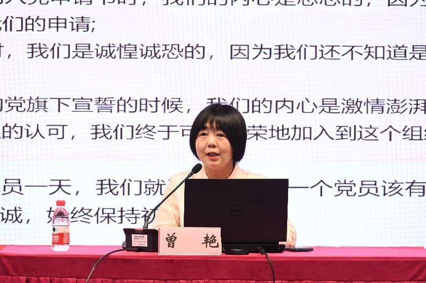 学院党委副书记曾艳为毕业生党员讲授《做新时代合格党员》专题党课,曾书记以重温入党誓词、回顾入党申请书、与毕业生党员交流等形式,结合自身入党经历和工作经验,分享优秀党员事迹,向毕业生党员提出必须时刻牢记党员身份,党员既是标杆,也是标准,更是高度。