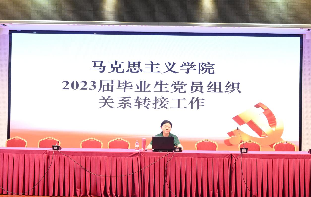 专题讲课结束后,2023届毕业生党员代表刘大鹏带领全体毕业生党员,再次在党旗下庄严地进行了入党誓词宣誓活动。学院党委专职组织员黄岚详细介绍了毕业生党员组织关系转接工作,尤其是对新的转接平台进行了详细介绍,并解答了毕业生党员组织关系转接工作中的部分疑惑。