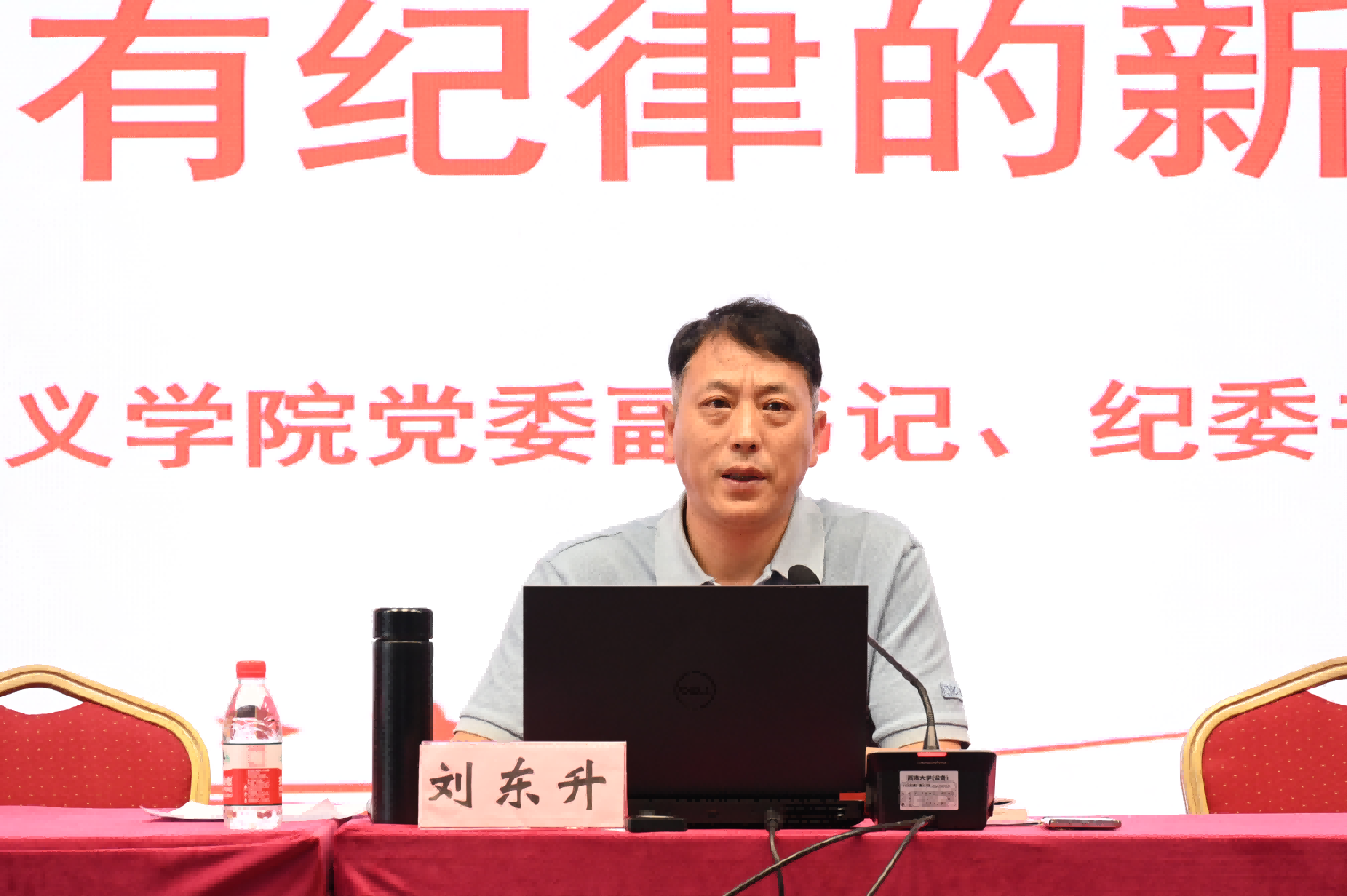 学院党委副书记、纪委书记刘东升讲授《清清白白做人、干干净净做事——做讲规范有纪律的新时代党员》专题党课,刘书记聚焦党的六大纪律,围绕毕业生各行各业工作实际,并结合大量典型案例,教育引导毕业生党员要牢固树立纪律与规矩意识,工作生活中要耐得住寂寞、挡得住诱惑、守得住底线,只有站得稳、行得正,才能走得远、飞得高。