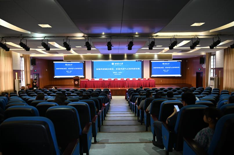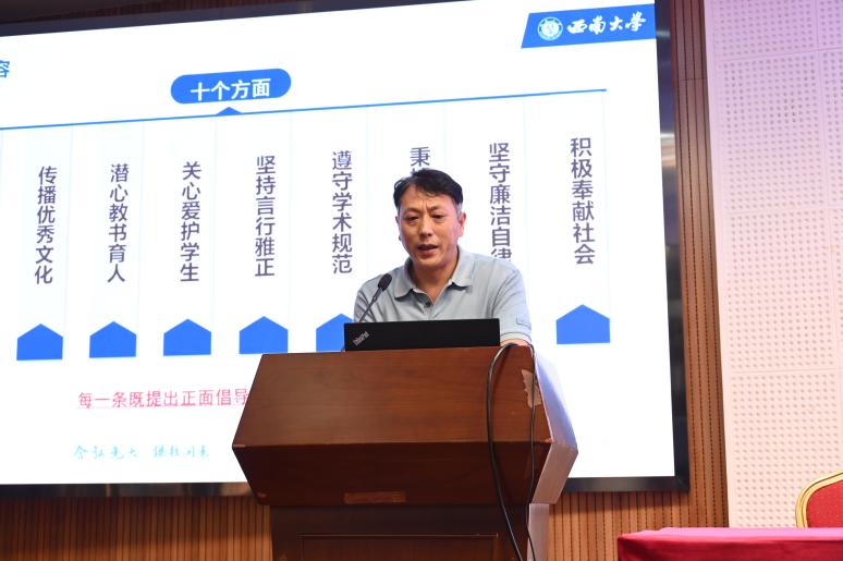 首先,学校王进军副校长和王志坚副校长分别做了“加强科研诚信建设,营造风清气正的科研环境”和“师德师风警示教育”的报告。