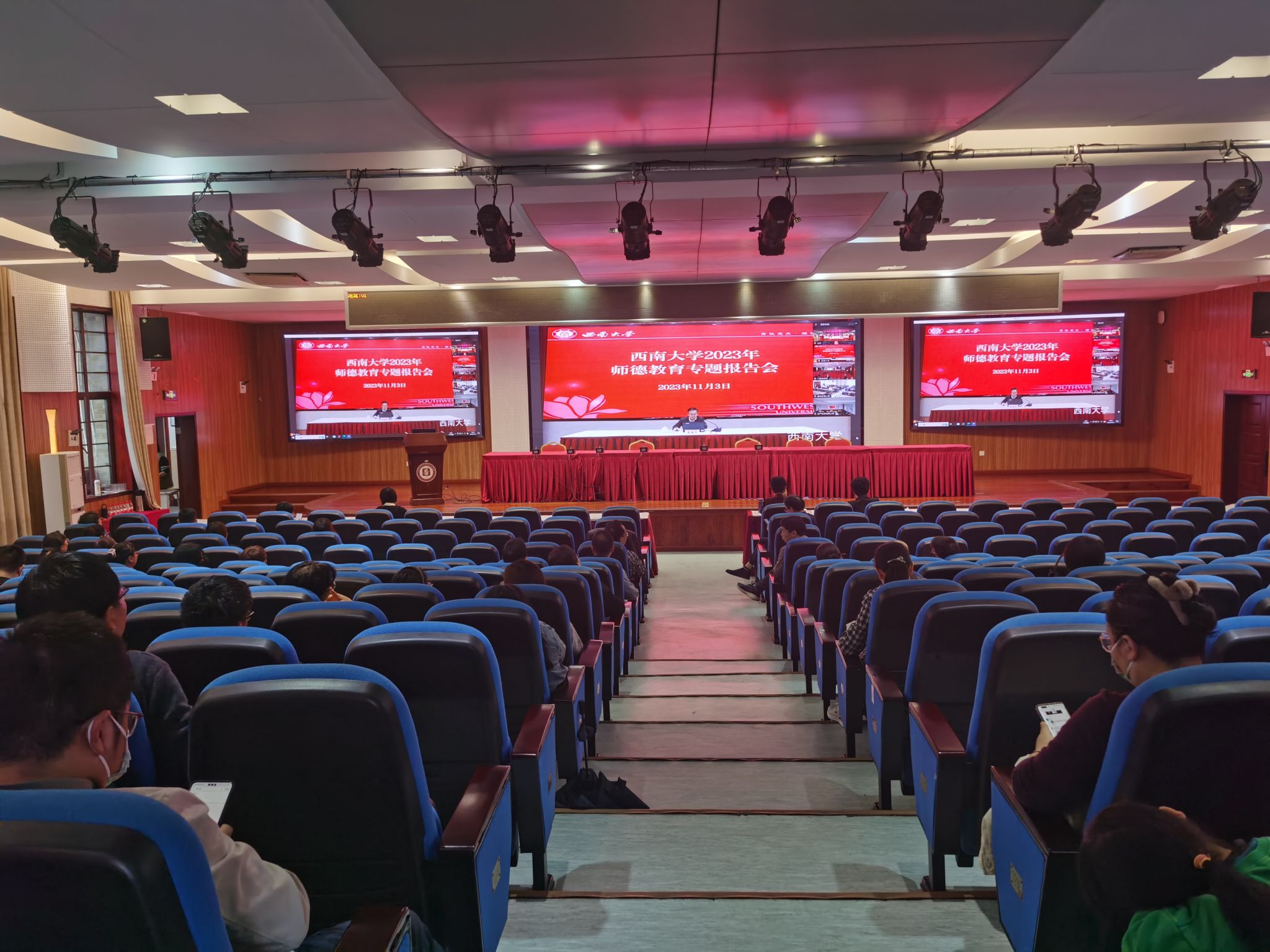 11月3日下午,学院举行2023年度第七次教职工政治理论学习,集中听取“弘扬教育家精神 努力成为大先生”师德教育专题报告。学院全体职工参加,会议由学院党委书记廖晓衡主持。