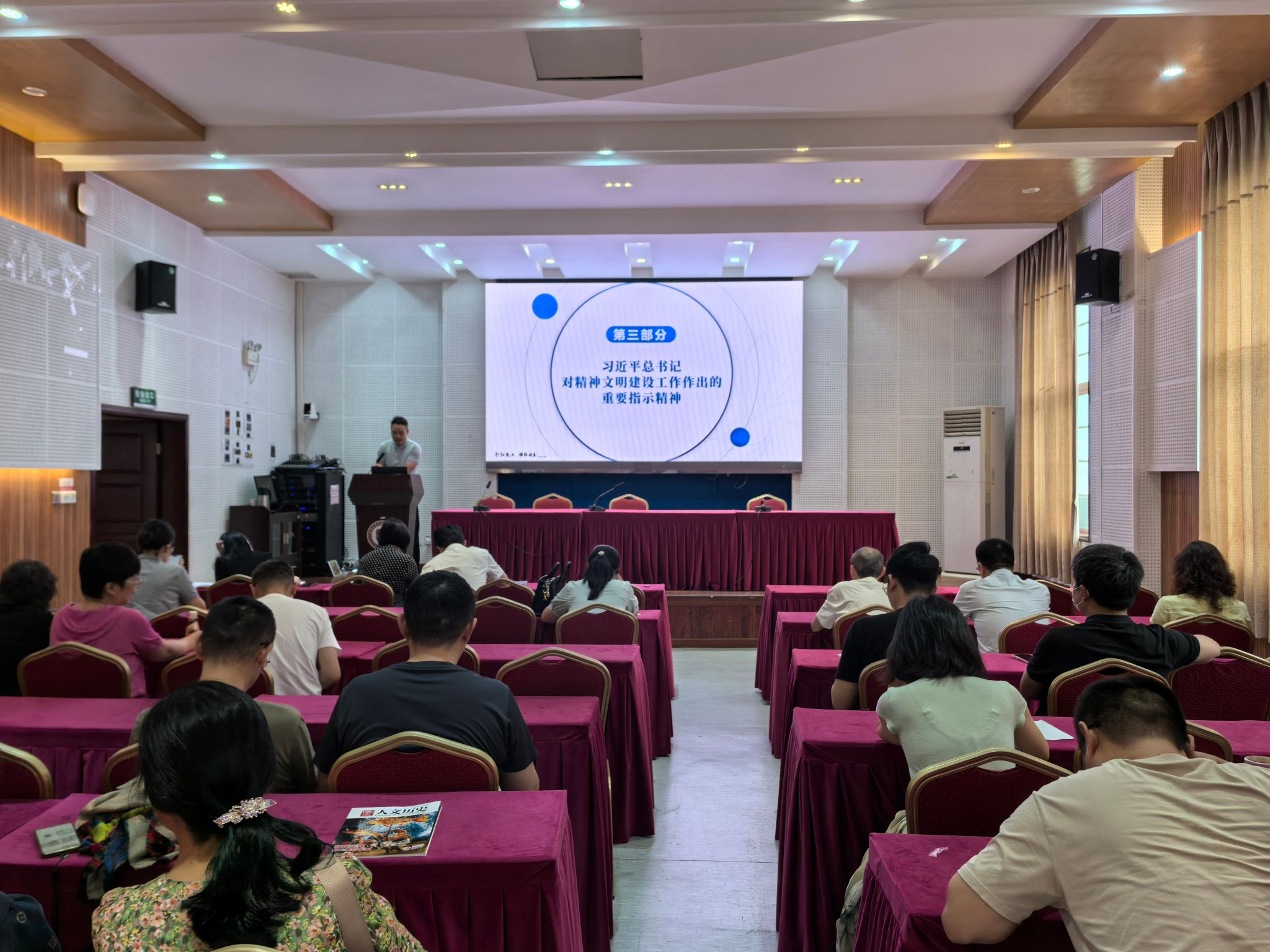 202566日下午,学院在501报告厅开展2025年第次教职工政治理论学习,集中学习了习近平总书记在河南考察时对开展深入贯彻中央八项规定精神学习教育发表的重要讲话精神、习近平总书记对“十五五”规划编制工作作出的重要指示精神、习近平总书记对精神文明建设工作作出的重要指示精神、习近平总书记致复旦大学建校120周年的贺信、《求是》杂志发表的习近平总书记重要文章《锲而不舍落实中央八项规定精神,以优良党风引领社风民风》和《宗教事务条例》。学院全体教职工参加,学院党委书记吴文杰主持,本次教职工政治理论学习由学院党委副书记罗亮领学。