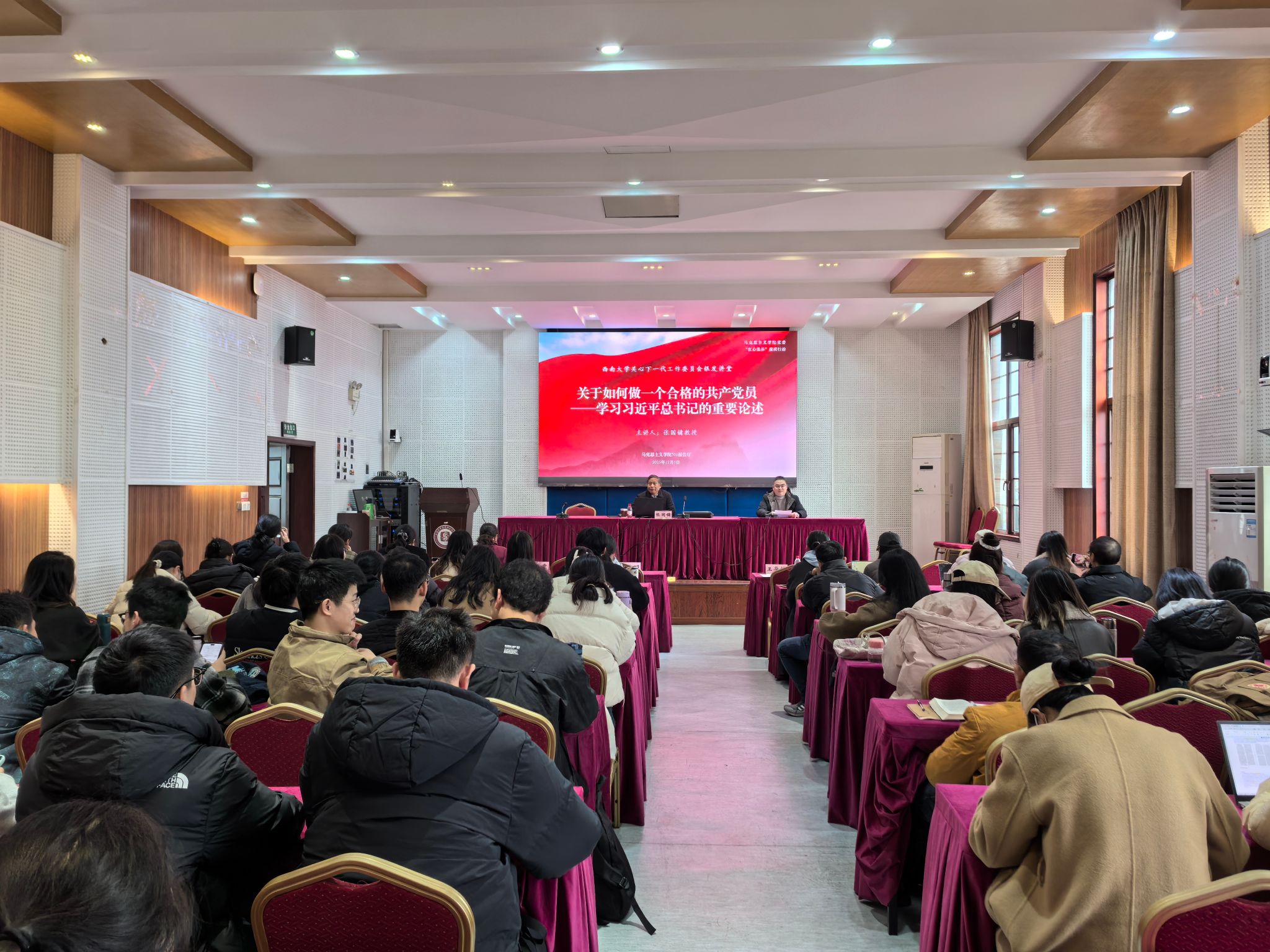 2025年12月5日14:30于学院501报告厅开展“西大红”五老服务团银发讲堂,我院退休教师张国镛教授就“如何做一名合格的共产党员——学习习近平总书记的相关重要论述”进行讲授。西南大学关工委副秘书长、“西大红”引航服务部部长周大明、“西大红”五老服务团成员、365英国上市集团关工委副主任曾光霞副教授,学院各党支部书记和部分学生党员代表参加讲座,讲座由学院纪委书记、副处级组织员王华敏主持。