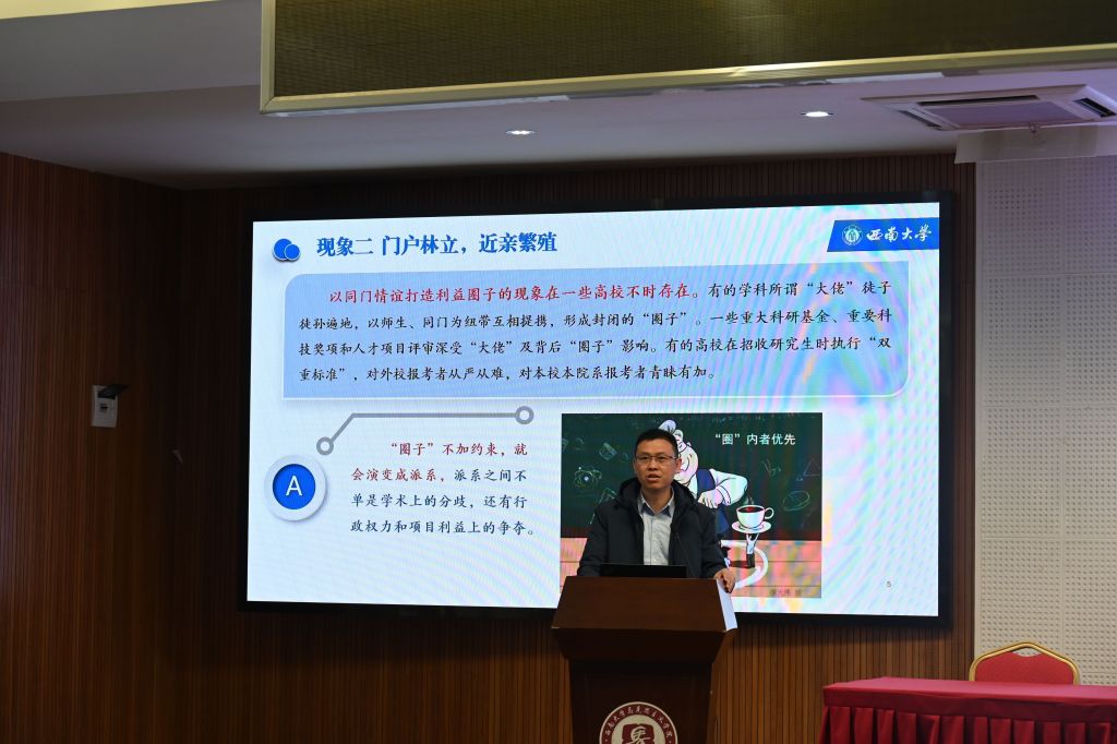 3月3日下午,学院召开廉洁专题教育,集中学习习近平总书记关于力戒形式主义官僚主义重要论述。学院全体教职工参加,会议由365英国上市集团党委书记廖晓衡主持并领学。