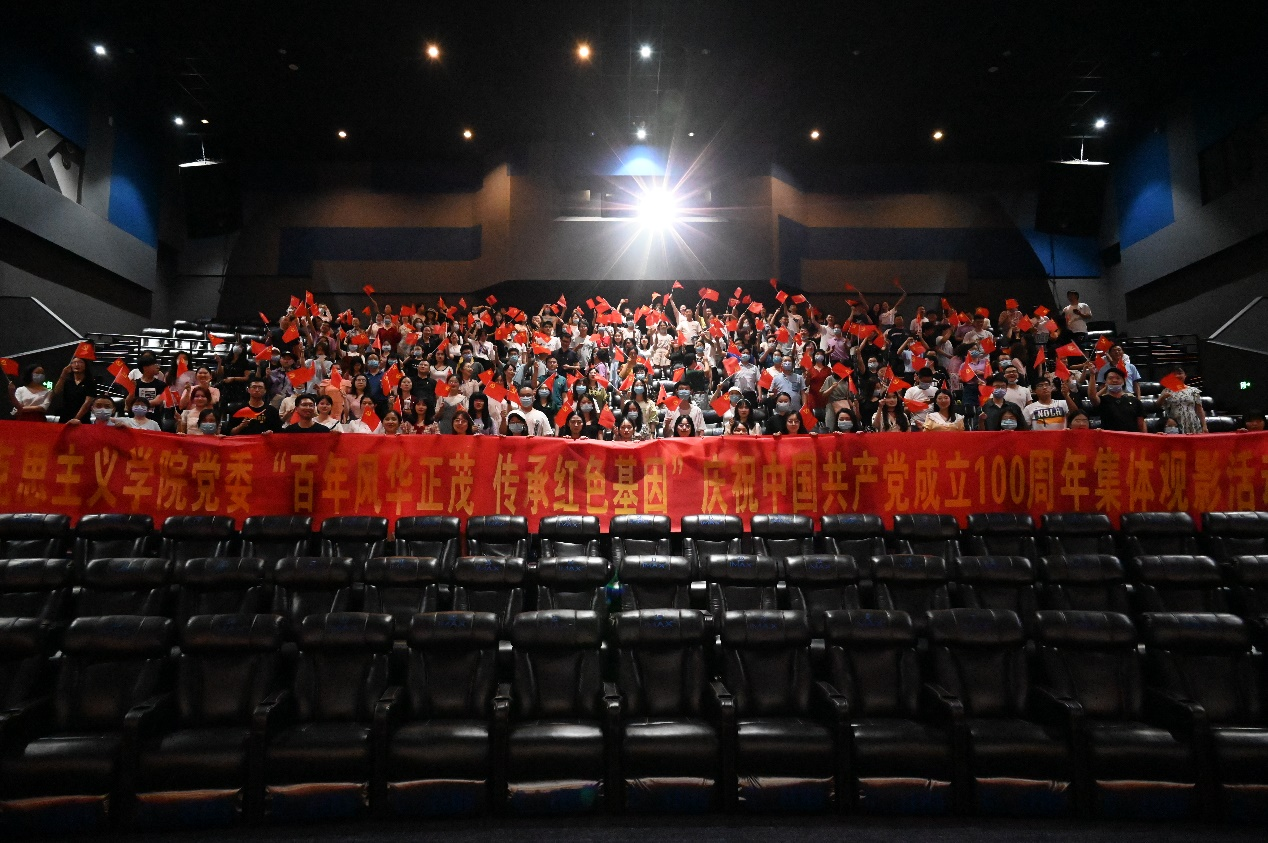2021年7月2日晚,为庆祝中国共产党成立100周年,学院党委组织全体教师和学生党员开展“百年风华正茂 传承红色基因”庆祝中国共产党成立100周年集体观影活动,集中观看了红色电影《1921》。