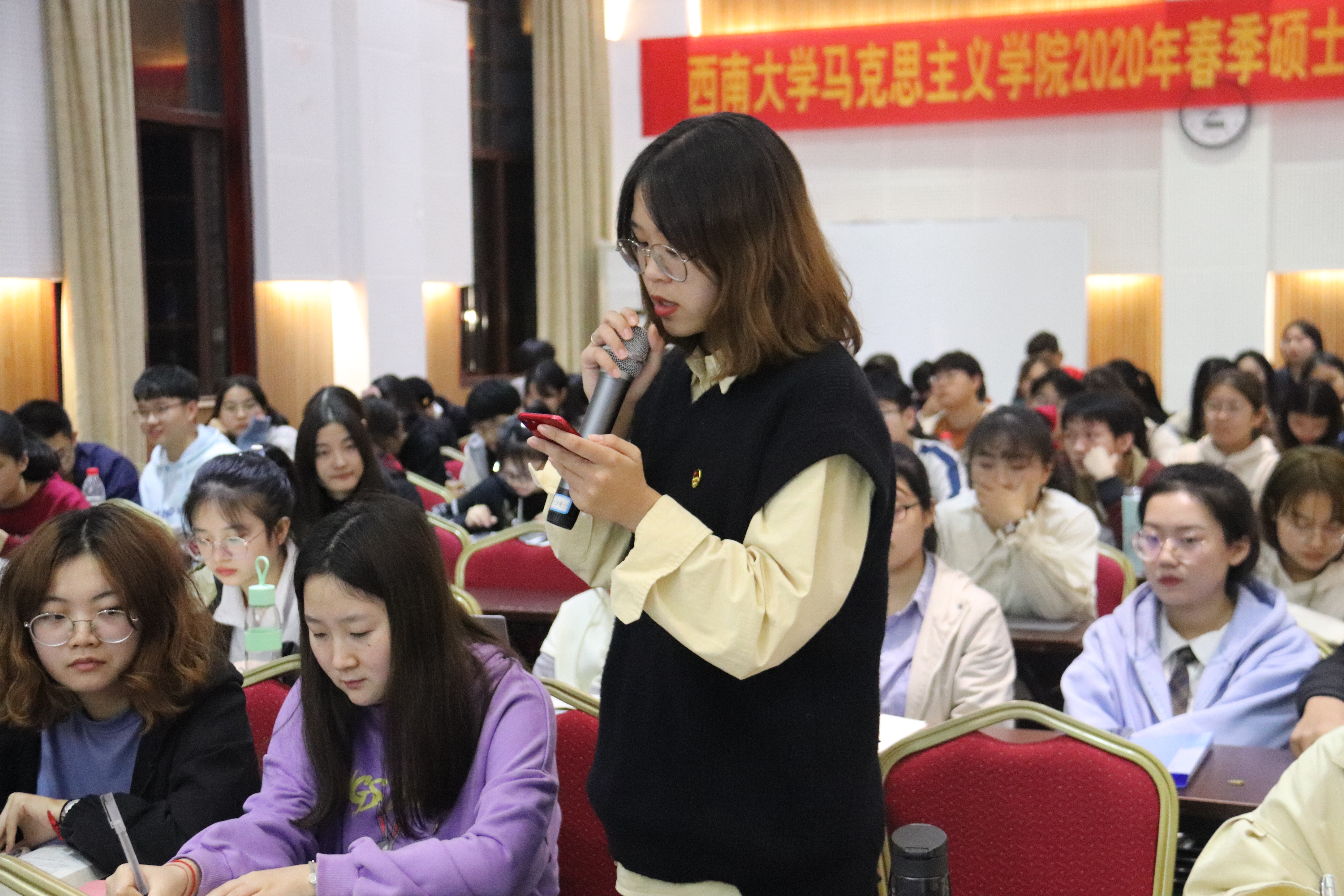在随后的专题分享环节中,学员们统一观看视频《共青团改革综述:在新时代中砥砺前行》,学习共青团改革相关知识;随后,西南大学学生会主席团成员鲁雨晴同学向我们分享了团干部的工作经验以及团员生活的变化。她首先用一段幽默的配音视频引出了大家在平常学习工作中存在的典型,问题诸如工作效率低下、积极性低、协调性差等问题,然后再根据自己的工作经验,向我们提出了一些实用性的建议。其次,针对学员们现在的学习生活,鲁雨晴同学提出,需要有新生活的需求以及独而不孤的新交往方式,给出了一些中肯的建议。
