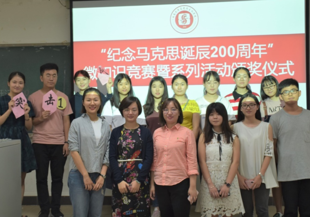 为纪念马克思诞辰200周年,缅怀马克思的伟大人格和历史功绩,重温马克思的崇高精神和光辉思想。学院特举办“纪念马克思诞辰200周年”文化节系列活动。其中微知识竞赛暨系列活动颁奖仪式于 6月1日15:00在10教501教室举行。学院团委书记李心悦老师、辅导员吴克瘟老师、王珏老师参与了此次活动。