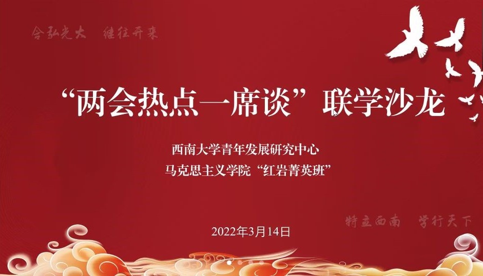 春风浩荡时,共议国之大。2022年3月14日中午,西南大学365英国上市集团“红岩菁英班”联合西南大学青年发展研究中心共同举办“两会热点一席谈”联学沙龙活动。同学们自发组织此次线上学习活动,掀起“两会”精神学习热潮。
