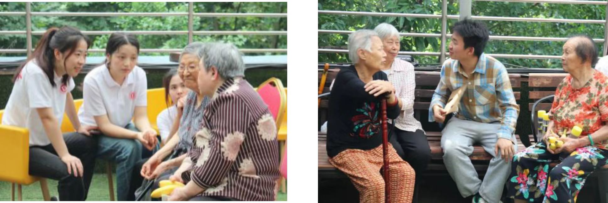 表演结束后,志愿者们为爷爷奶奶们送去水果,和他们亲切地拉着家常。详细了解他们的生活起居和健康状况,提醒他们注意日常保养和疾病的预防。爷爷奶奶们也敞开心扉,给志愿者们讲述属于他们年代的青春故事,整个敬老院充满着温馨、祥和的氛围。