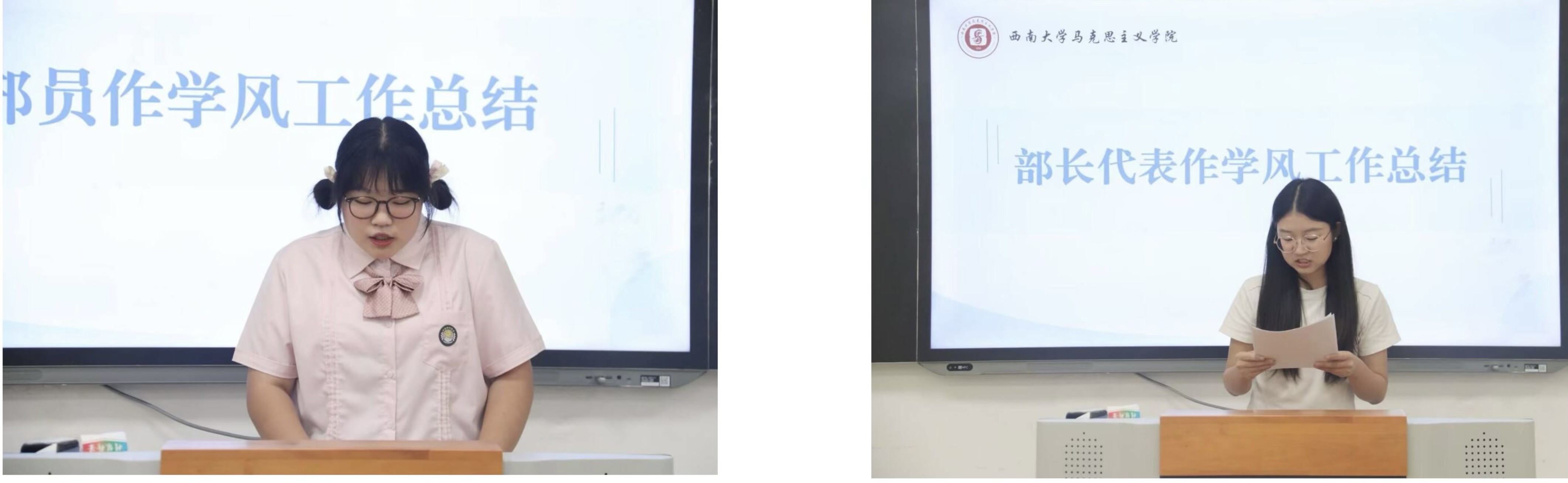 年度工作总结环节中,学习生活部的8位部员依次介绍了大一学年的工作内容、工作经验和工作反思。在过去的一年中,他们踏实肯干,为学院本科生学风建设工作添砖加瓦,贡献力量。学习生活部部长许有萍总结了本学年学院本科学风建设工作的总体情况,她建议应将学风建设工作作为一个系统来设计,整合资源和平台,引导同学们专注学习、收获成长。