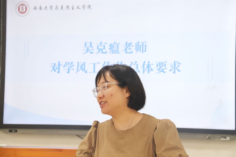 吴克瘟老师对本科生学风建设工作提出三点建议。一是以学生需求为牵引,将学风建设措施落到实处。二是以学生发展为目标,促进学风建设内容融入学生日常学习中。三是坚持问题意识,敢于发现问题善于解决问题,树立良好的院风、学风、班风、寝风。