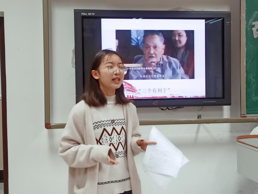 在主席团总结发言中,团支书徐悦指出:“第一环节的沙画形式十分生动,在‘博物馆之旅’中,三个讲解员的讲述具有不同的风格,引领我们大家共同感受改革开放四十年来的变化,我也在‘小宣拍卖会’中感受到了同学们理论学习的积极性。”“浦东的发展经验与我们国家2035远景目标,与改革、开放、创新的精神十分贴切,体现了我们平衡公平与效率的制度优越性,有利于树立体系、文化、道路自信”最后,团长何炫达从“为什么要把浦东作为学习话题”这一问题出发,总结了浦东开发开放30年取得的显著成就对中国发展的重大借鉴意义。