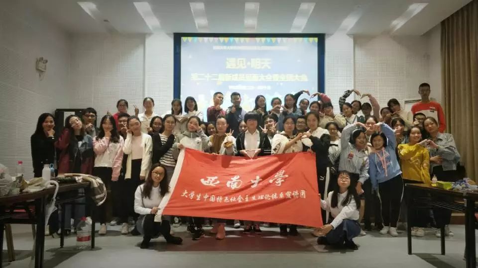 遇见。经过高考,遇见西大。经过马院,遇见宣讲团。相识于九月,相聚于十月。来自四海八荒的团员们将在以后的工作中,互相学习,互相交流,互相进步。学生宣讲团的团员们一定能扛起大旗,继续奋斗,继续拼搏。
