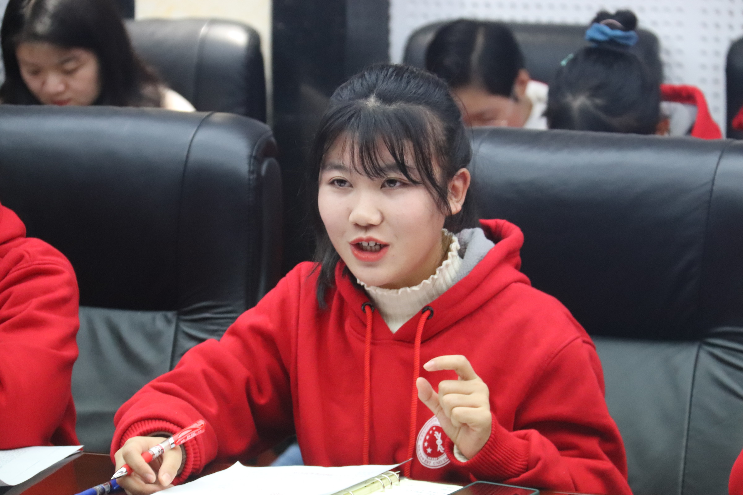唐老师讲解结束后,师生间展开热烈讨论。研究生研读团团员与学生宣讲团团员积极分享学习心得体会。学生宣讲团团员张颖在交流讨论中说,作为新时代青年首先要做到同史并进,不断加强思想淬炼,时刻保持清醒头脑和坚定立场。其次,新时代青年应践行初心使命,并在实践中磨练自己。最后,新时代青年应担当作为,永无穷期。作为马院学子应该学好理论,传播理论,实践理论。