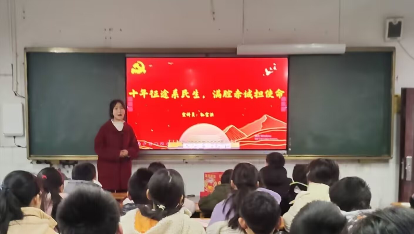 孙富洪同学在重庆市石柱县南宾镇华丰小学向六年级二班学生宣讲,在讲到中共党员“绝壁愚公”毛相林的故事时,有的学生甚至感动落泪,在宣讲结束后热烈鼓掌。相信此次宣讲已在他们的心中埋下一颗名为“人民”的种子,终会在未来生根发芽,茁壮成长。