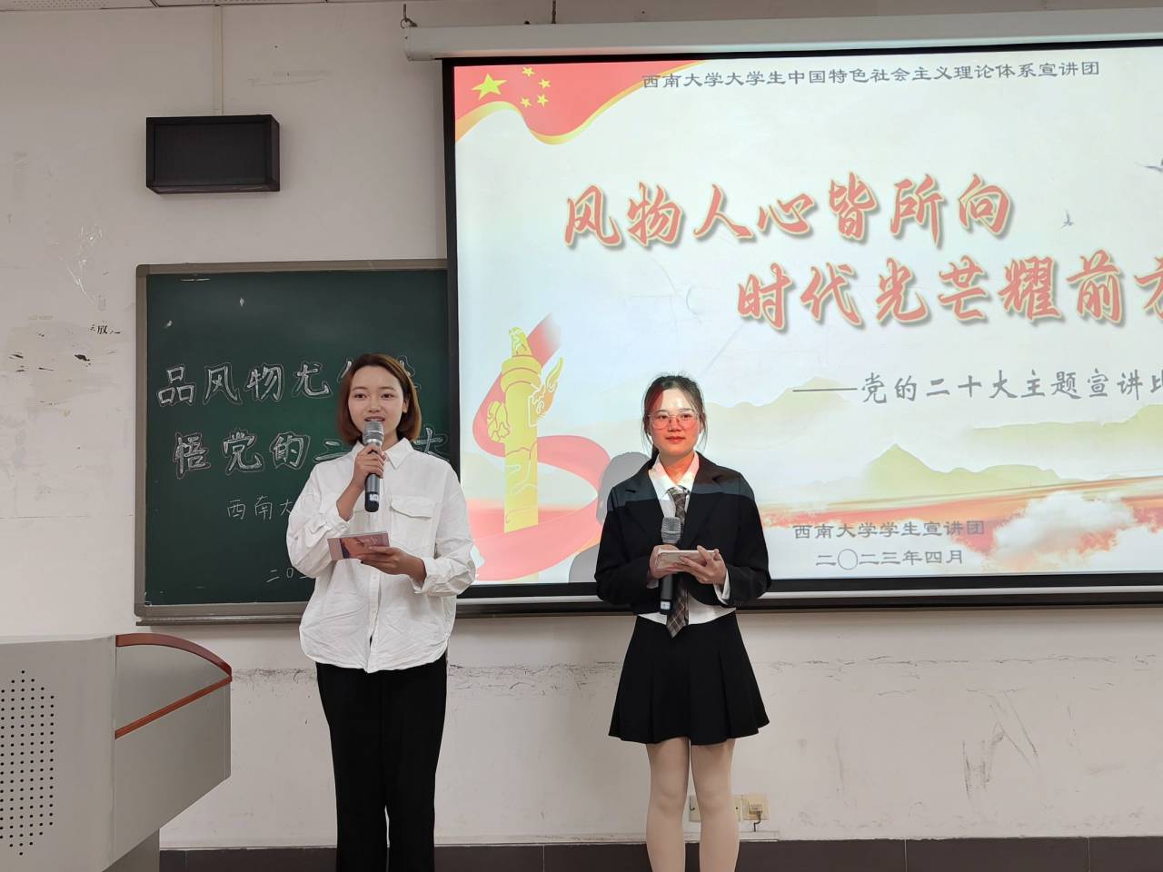 历史的画笔勾勒出风物更迭的印记,时代的音符谱写出复兴的华章。为进一步弘扬党的二十大精神,激励团员踔厉奋发、勇毅前行,并切实提高团员宣讲能力和撰稿能力,西南大学大学生中国特色社会主义理论体系宣讲团(以下简称“学生宣讲团”)特举办本次“风物人心皆所向,时代光芒耀前方”党的二十大主题宣讲比赛。
