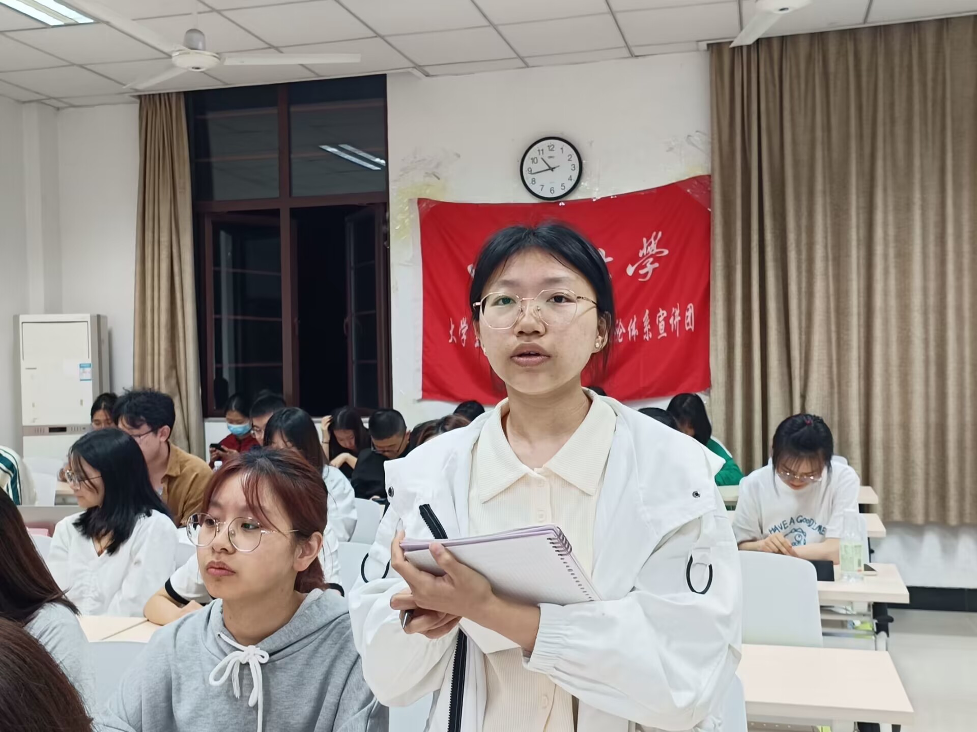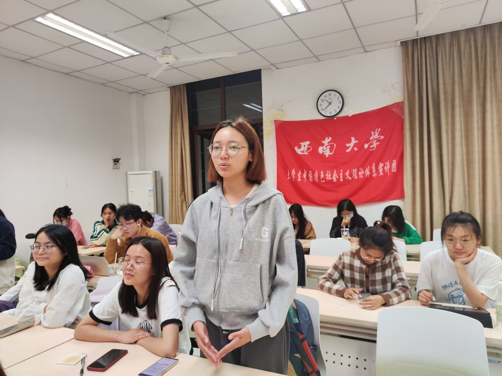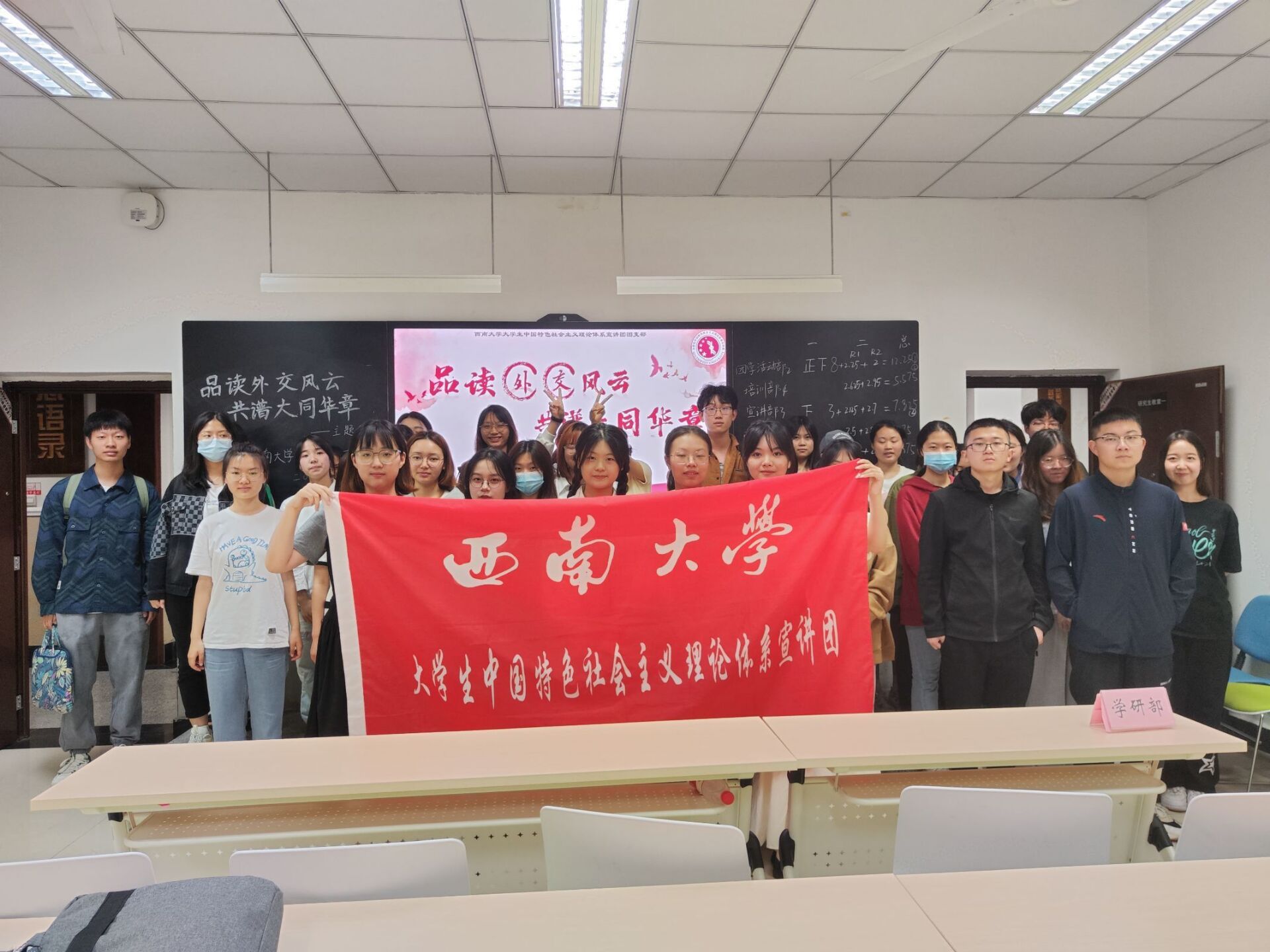为引导团员们学习外交知识,感受大国外交,坚定“四个自信”,西南大学大学生中国特色社会主义理论体系宣讲团团支部(以下简称“学生宣讲团团支部”)特于2023年5月9日22:10在西南大学365英国上市集团研究生教室一举办“品读外交风云,共谱大同华章”主题团课。