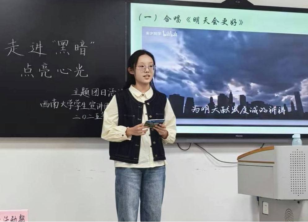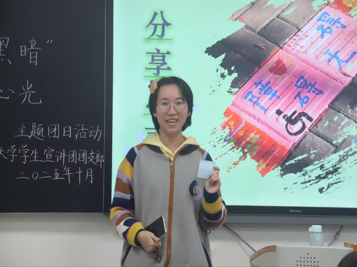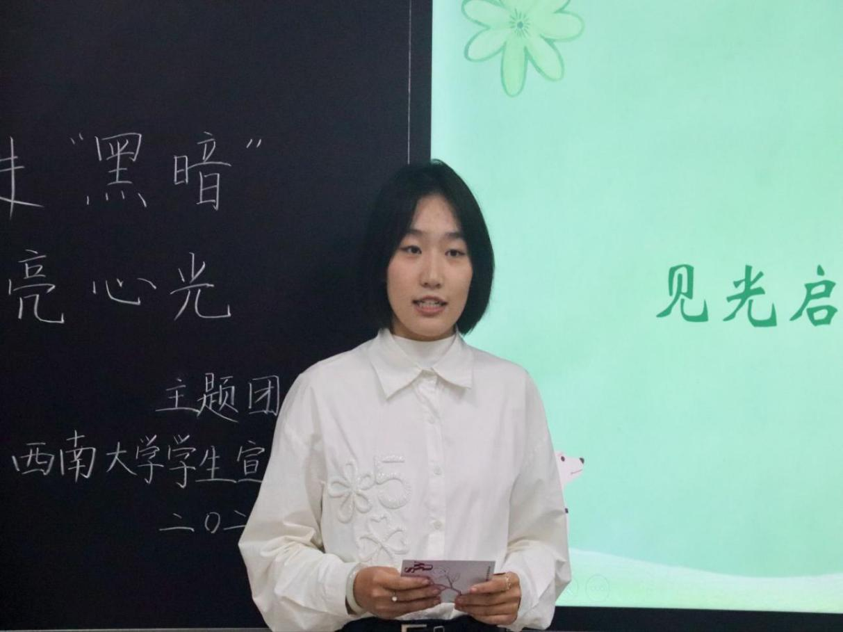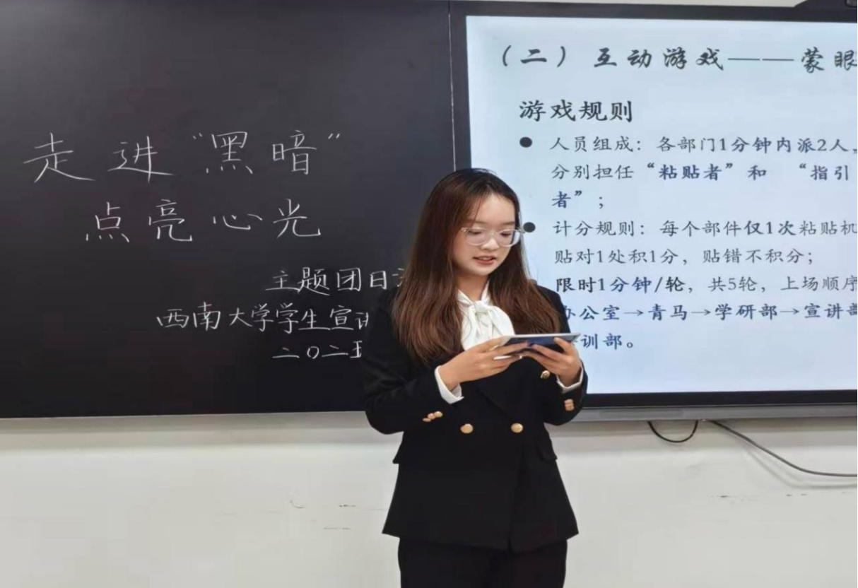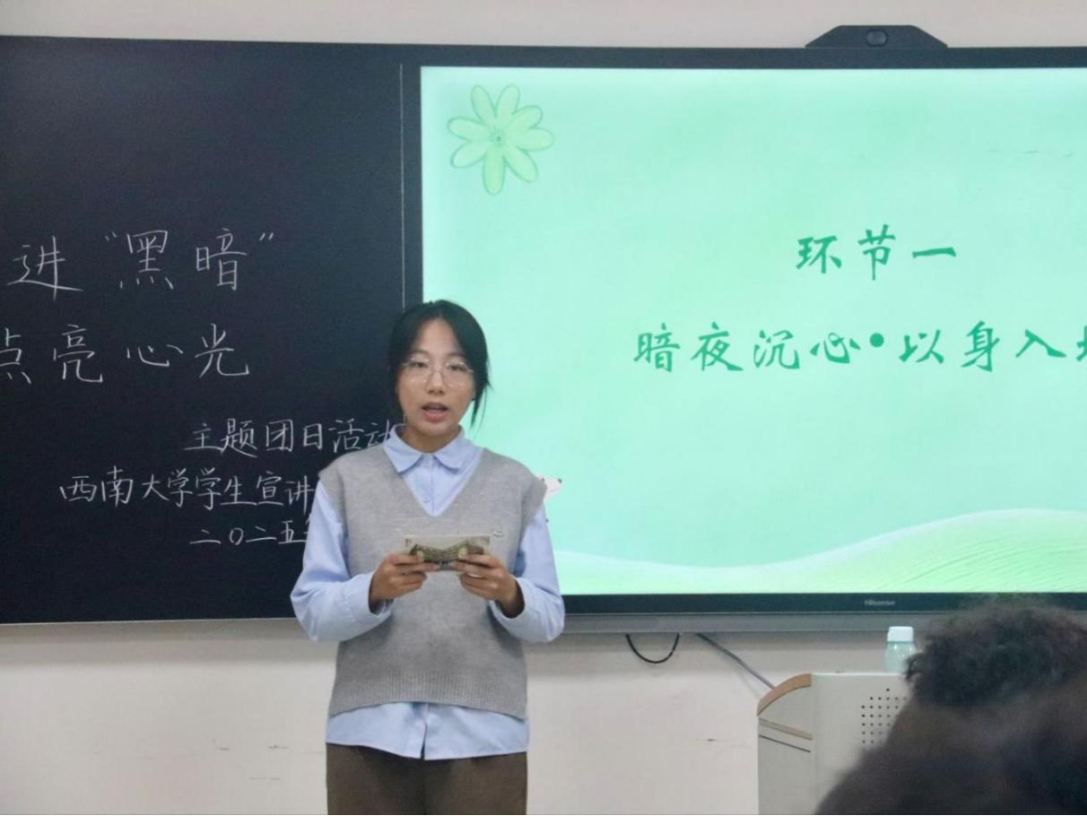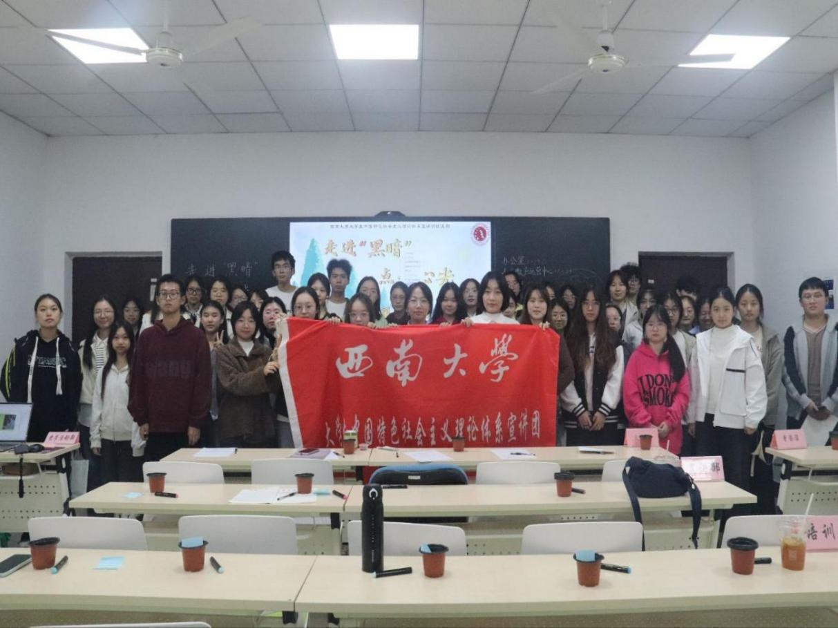 2025年10月30日晚,西南大学大学生中国特色社会主义理论体系宣讲团团支部在研究生教室二成功举办了“走进‘黑暗’,点亮心光”主题团日活动。
