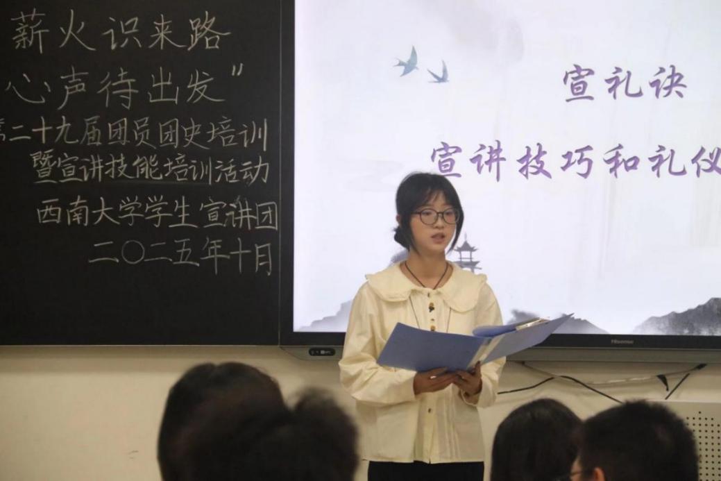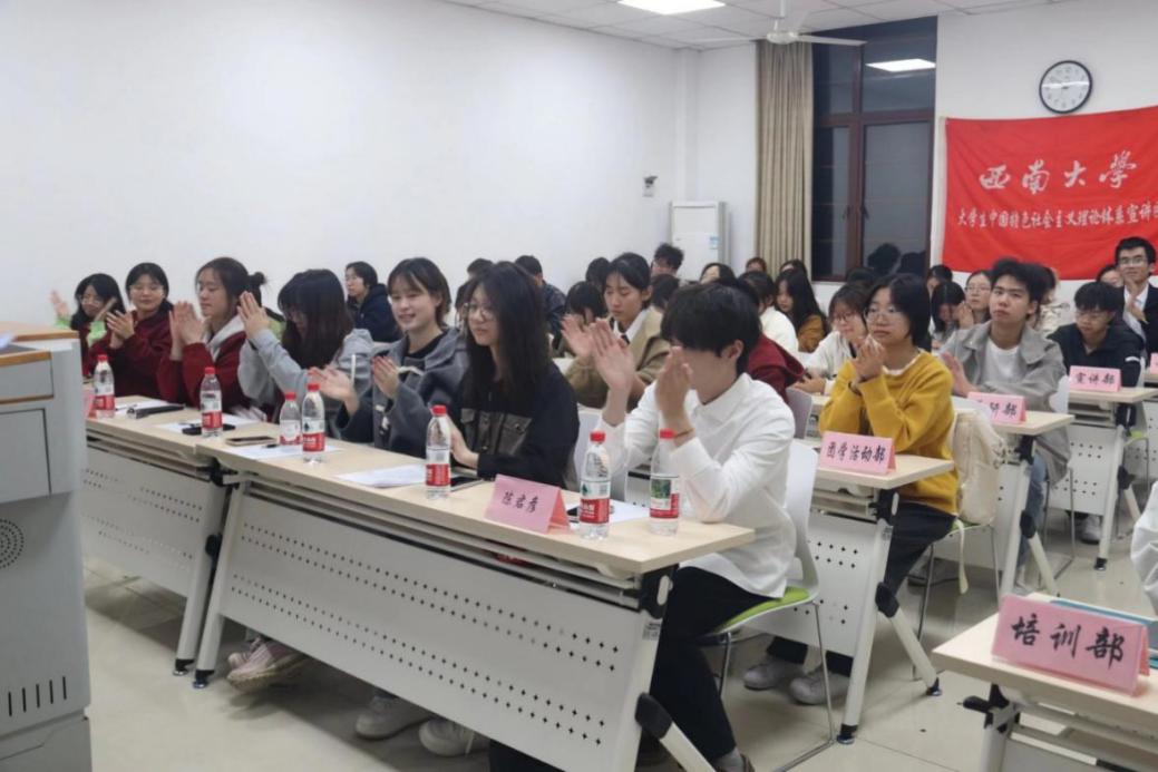 为全面提高第二十九届团员综合素养,增强全团凝聚力,西南大学大学生中国特色社会主义理论体系宣讲团(以下简称“学生宣讲团”)特举办“岁序常新砺己志,笃行不辍赴新程”系列培训活动。