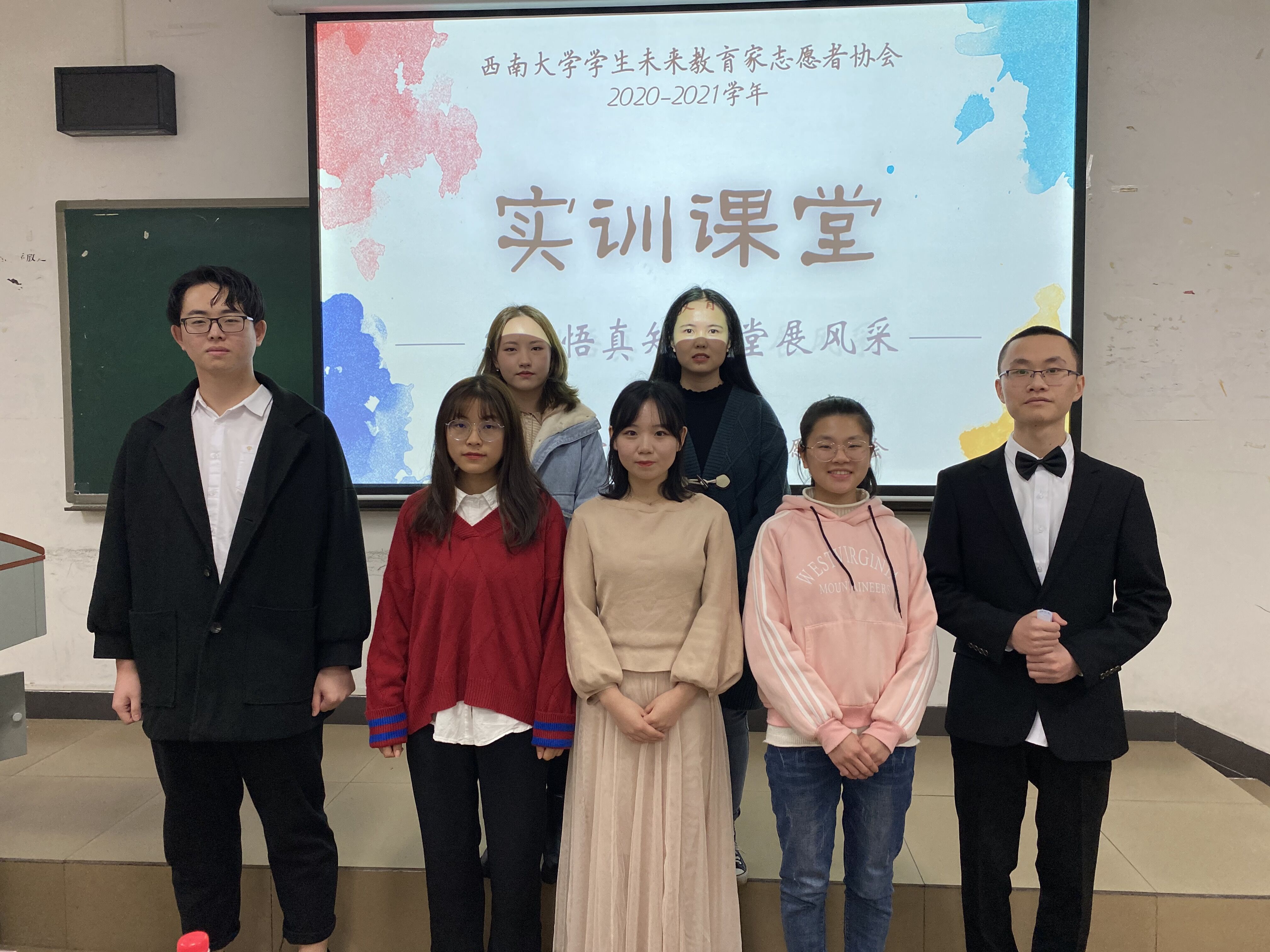 为提高我院师范生教学能力,助推师范生尽早适应课堂教学,在实践中发展自我,西南大学学生未来教育家志愿者协会(以下简称“未协”)特于2020年11月21日19:00在西南大学第十教学楼602教室举办西南大学学生未来教育家志愿者协会第六届第二期 “实训悟真知•课堂展风采”实训课堂活动。莅临本次活动的嘉宾有本科2017级学生黄镜霓、李美华。未协全体成员到场参加。