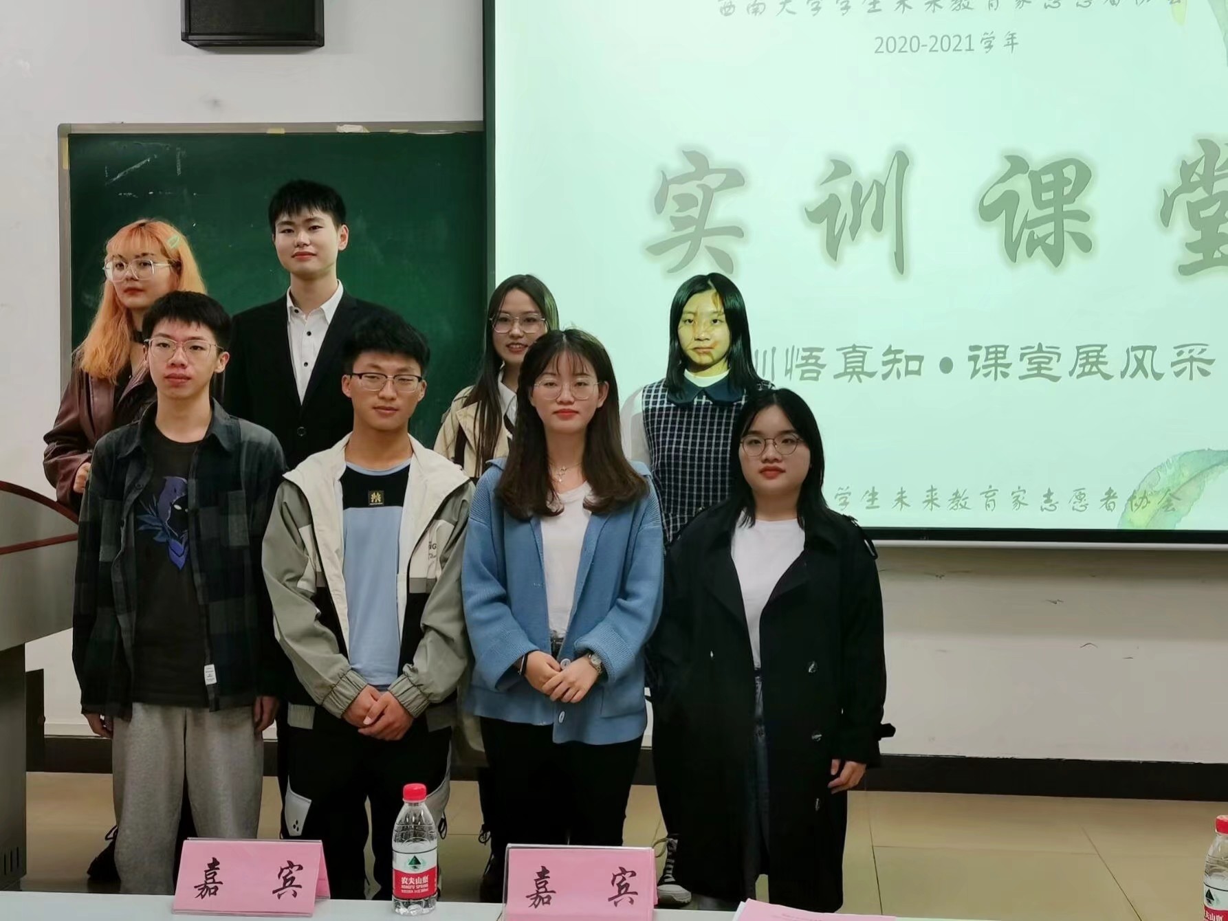为提升我院师范生讲课技能和教师综合素质,助推师范生尽早适应课堂教学,在实践中成长,西南大学学生未来教育家志愿者协会(以下简称“未协”)特于2020年10月24日19:00在西南大学第十教学楼502教室举办西南大学学生未来教育家志愿者协会第六届第一期“实训悟真知·课堂展风采”实训课堂活动。莅临本次活动的嘉宾有本科2017级学生赵朝围、龙珍珍。未协全体成员到场参加。