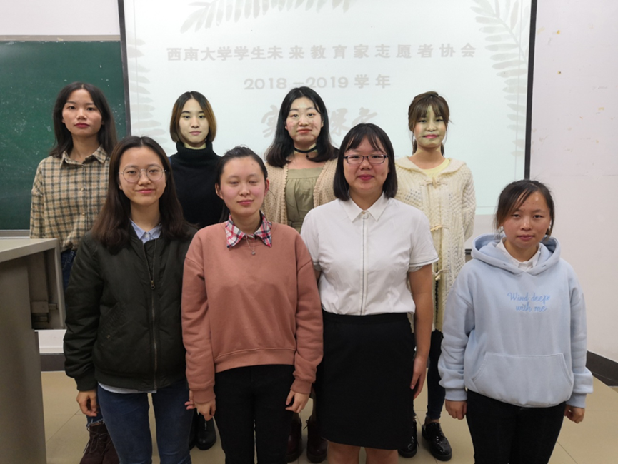 为锻炼师范生讲课技能,促进师范生之间的相互学习,西南大学学生未来教育家志愿者协会(以下简称“未协”)特于2018年10月14日19:00在第十教学楼402教室开展西南大学学生未来教育家志愿者协会2018-2019学年“实训一叶 融合真知”实训课堂活动。出席本次活动的嘉宾是具有丰富讲课经验的本科2015级学生张小翠。