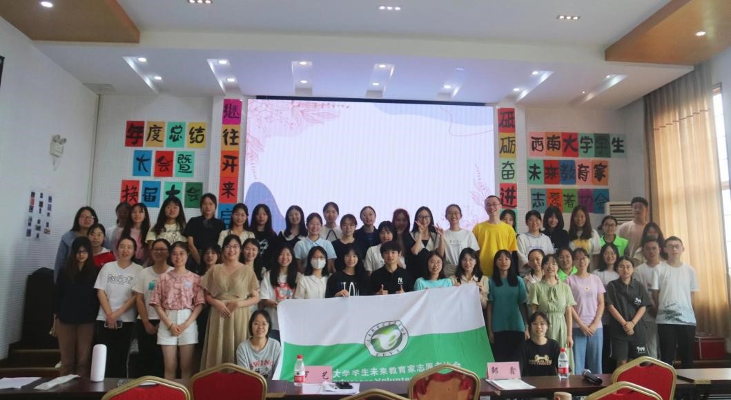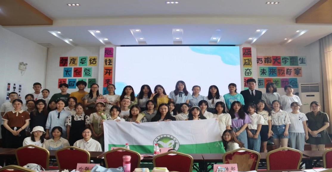 为促进协会发展,顺利有序地实施换届交接工作,为协会注入新鲜血液,西南大学学生未来教育家志愿者协会(以下简称“未协”)于6月17日在学院501报告厅举办年度总结大会暨换届大会。社团指导老师罗艺以及未协全体成员参加本次活动。