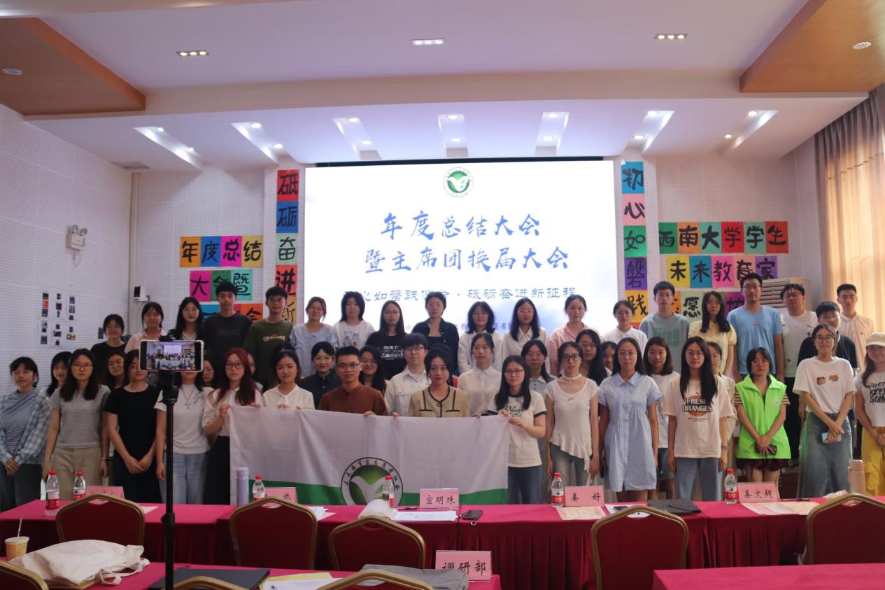 为提升内部凝聚力与向心力,推动协会高质量发展,西南大学学生未来教育家志愿者协会(以下简称“未协”)“初心如磐践使命·砥砺奋进新征程”年度总结大会暨换届大会特于6月8日9:30在学院501报告厅举办。出席本次活动的嘉宾是协会指导老师宣明珠老师,未协全体成员到场参加。