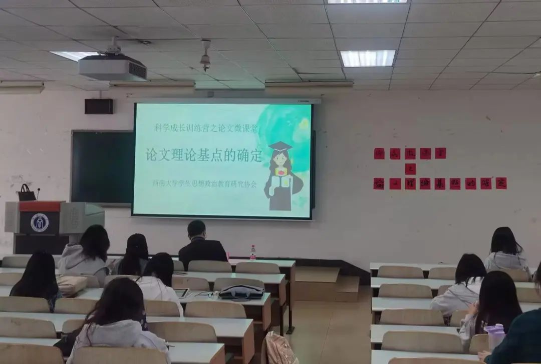 为帮助马院学子提高论文写作能力,强化学科意识,增强学科素养。2023年3月17日下午3:00,西南大学学生思想政治教育研究会特此于十教402举办科研成长训练营之“论文微课堂第九期——论文理论基点的确定”,邀请嘉宾宋明老师带领同学们学习如何确定论文选题、如何构建论文的逻辑框架和如何确定论文的理论支点。
