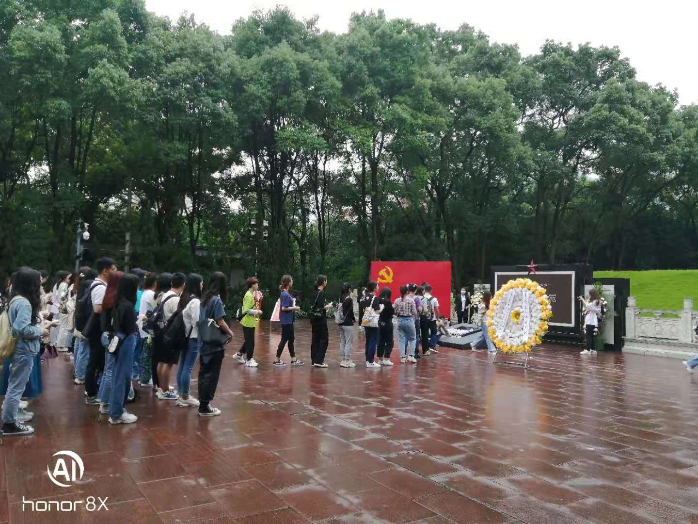 在烈士陵园,同学们怀着无比崇敬的心情缅怀了革命先烈,向烈士敬献花篮、行三鞠躬礼、重温入党誓词、敬献小白菊、绕墓一周瞻仰烈士墓园。