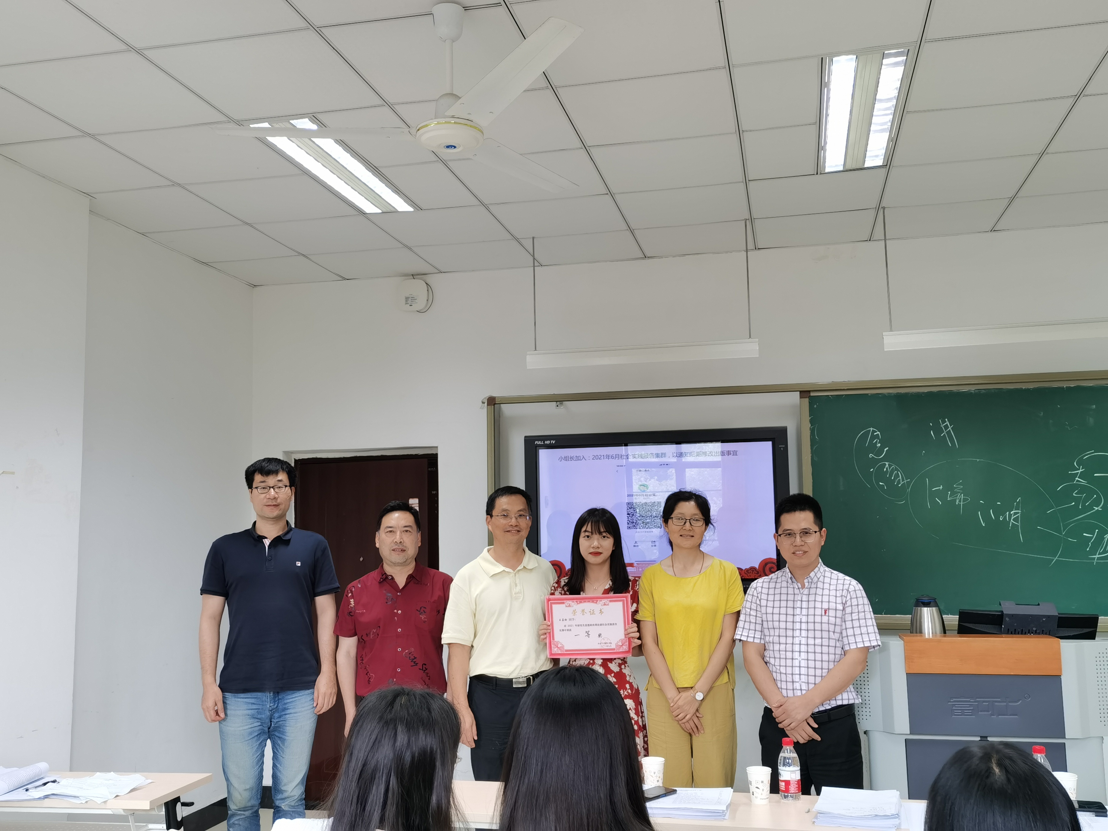图为第四组评委教师为一等奖获得者代表颁奖
