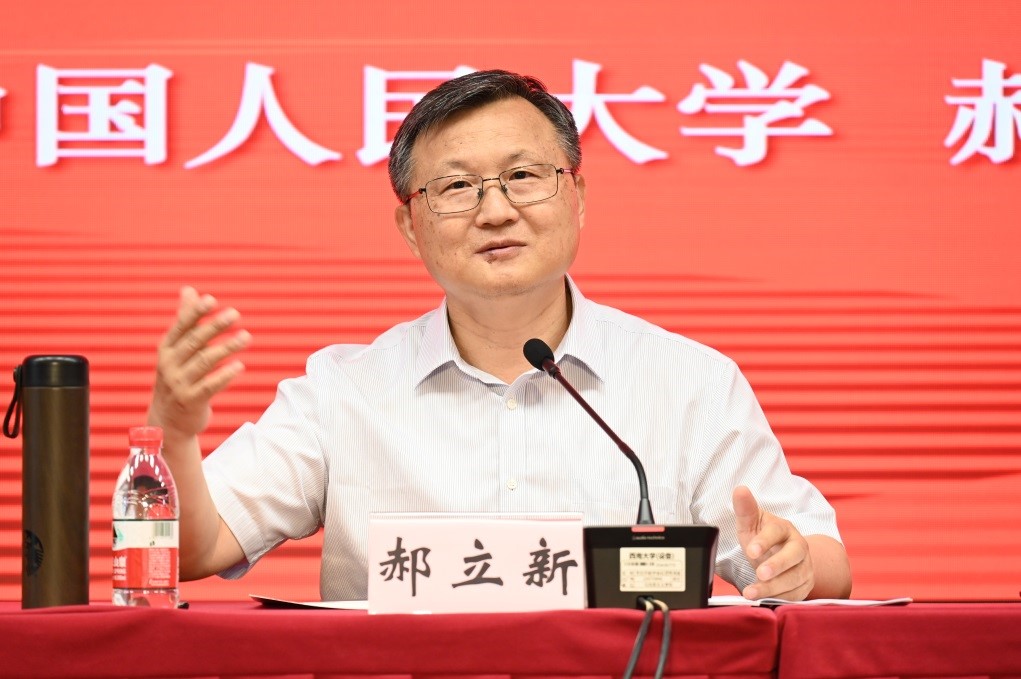 郝立新院长作题为《如何理解和推进马克思主义中国化》的主旨报告。郝院长围绕如何理解和推进马克思主义中国化阐释习近平总书记“七一”重要讲话精神,强调要全面把握“一个主题”“四个成就”“九个必须”等重要观点,深刻分析了党的初⼼使命和马克思主义世界观的关系、社会⽂明新形态、党建精神和马克思主义理论的关系、新时代马克思主义中国化的内在逻辑和历史性飞跃,提出要以史为鉴,开创未来,推进马克思主义中国化走向未来。