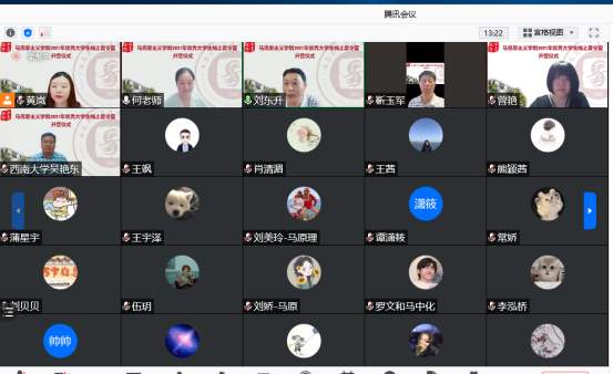 7月10日晚7时,开营仪式在腾讯会议平台如期举行,党委副书记刘东升主持开营仪式。党委副书记曾艳,副院长何玲玲教授、吴艳东教授、靳玉军教授出席开营仪式。夏令营班主任黄岚、副班主任王飒与来自全国32所高校的50名营员齐聚“云端”,共话“马院”。首先,副院长何玲玲代表学院致辞,对所有营员表示热烈欢迎,并对学院的历史沿革、师资队伍、学科建设、人才培养质量等方面进行了详细介绍。何院长希望各位营员充分利用这次学习和交流的机会,进一步了解学院的历史、文化和精神,同时诚挚邀请大家随时亲自前来零距离了解学院。接着,她向营员介绍了学院研究生培养工作的思路、举措与成效。随后,黄岚老师宣读了此次夏令营的纪律要求和日程安排。最后进入师生互动环节,营员们围绕学院研究生人才培养、学习生活环境等方面积极提问,学院领导与教师针对营员们的问题逐一进行解答,现场气氛活跃轻松。