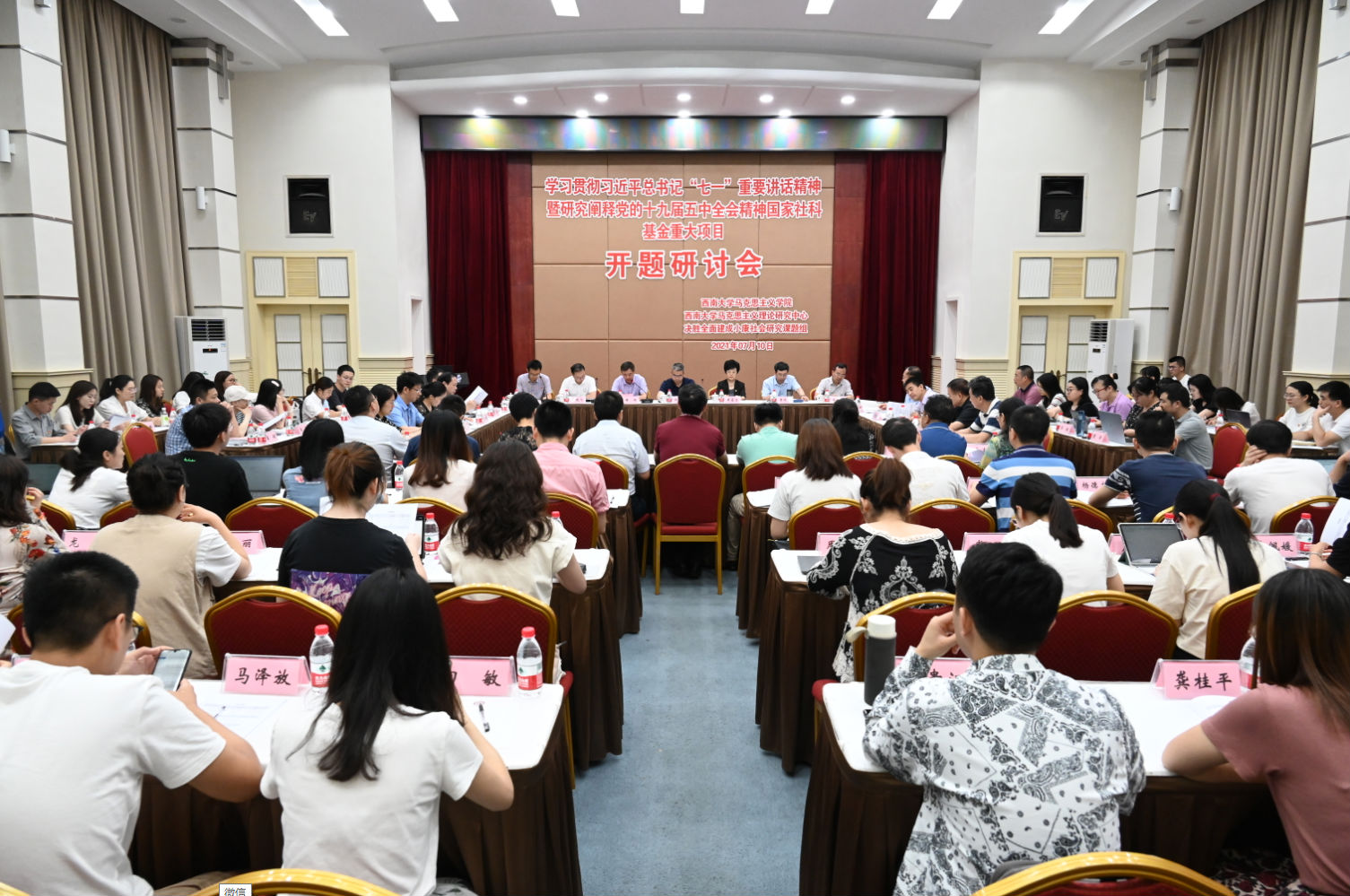 2021年7月10日上午,学习贯彻习近平总书记“七一”重要讲话精神暨研究阐释党的十九届五中全会精神国家社科基金重大项目“决胜全面建成小康社会的思想构筑、实践创新、辉煌成就与宝贵经验研究”开题研讨会在西南大学隆重举行。会议由学校社科处处长邱江教授主持。