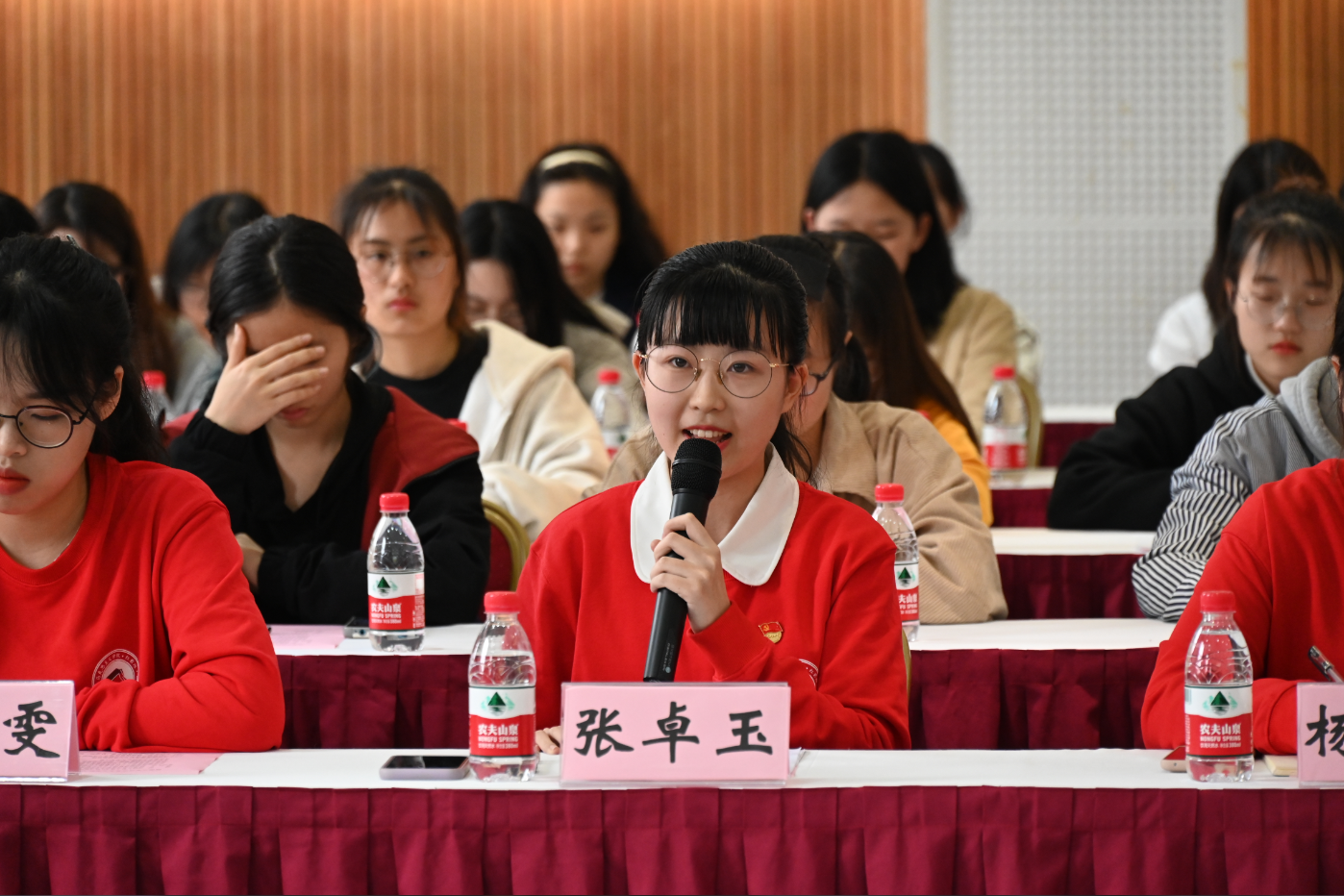 之后,“红岩班”学生代表张卓玉发言。表达了对革命先烈的敬仰和传承红色文化的决心,并号召全体同学提高素养,增强捍卫理想的信心、决心。