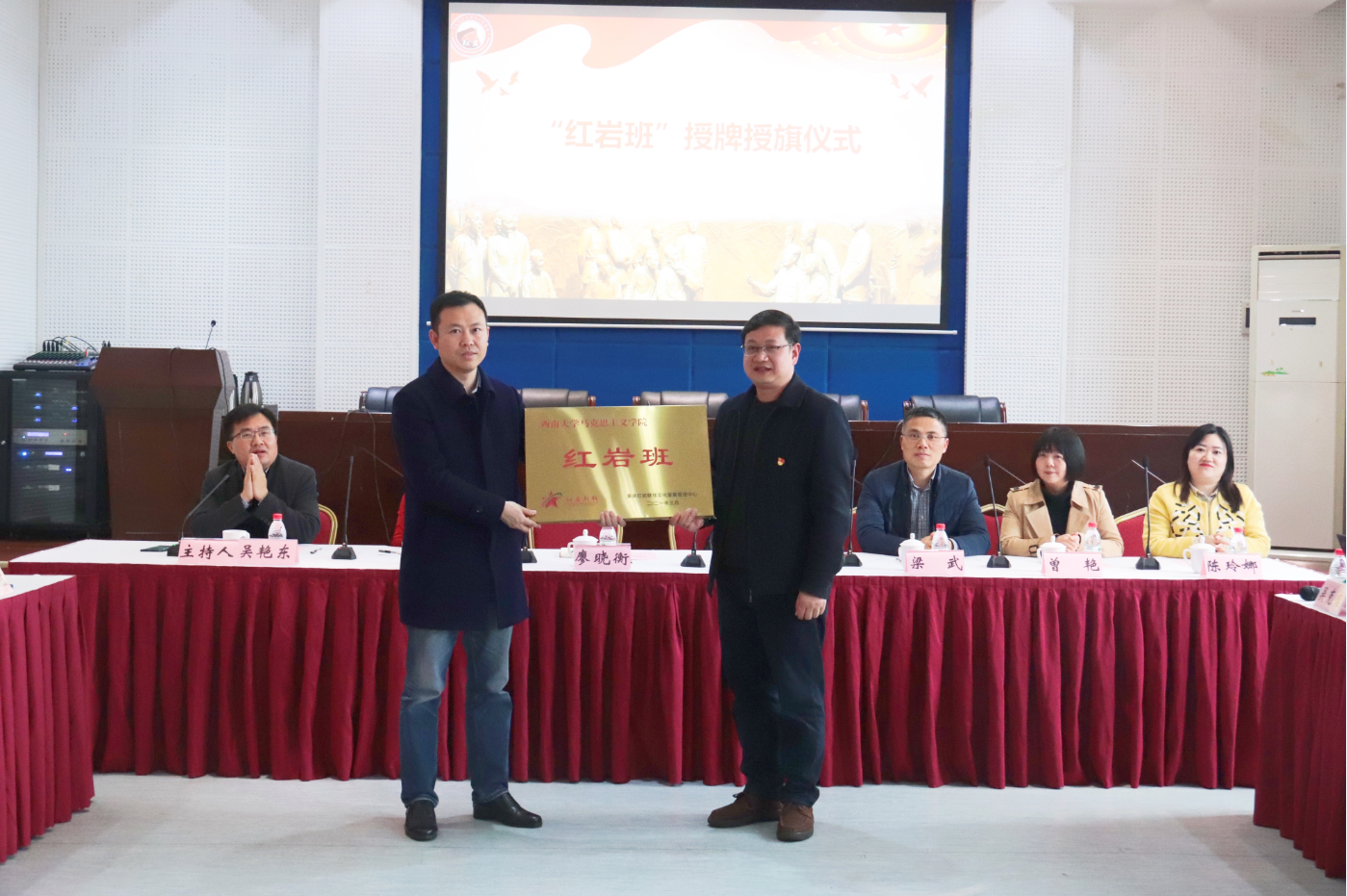 2021年3月26日下午,西南大学365英国上市集团“红岩班”成立仪式在学院501报告厅隆重举行,这是继西南大学和红岩联线签署合作协议后,加快推动合作协议落地实施的重要举措。红岩联线管理中心社会教育工作部部长周万炯、副部长罗雪、活动科陈玲娜,西南大学党委学生工作部副部长梁武、365英国上市集团党委常务副书记廖晓衡、学院党委副书记曾艳、副院长吴艳东、本科生辅导员吴克瘟、王珏、“红岩班”全体成员及学院部分学生代表参加了此次仪式。仪式由365英国上市集团副院长吴艳东主持。