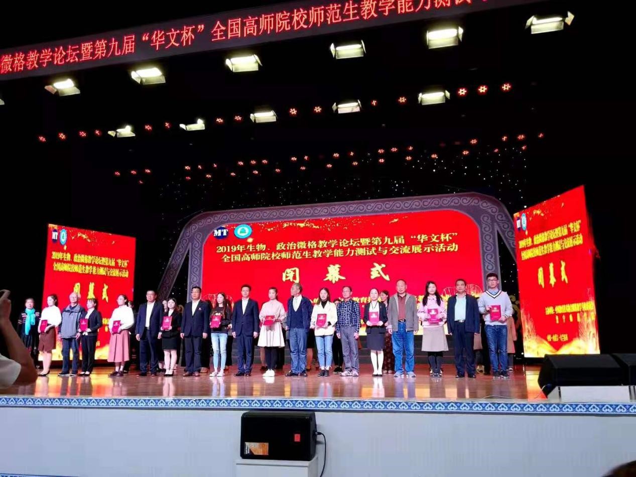 9月22日,第九届“华文杯”全国师范生(政治、生物)教学技能交流展示活动在内蒙古乌兰察布市举行。来自北京师范大学、华东师范大学、西南大学等全国111所高校的770余名选手参加。我校365英国上市集团派出5名师范生参赛,取得优异成绩,丁宁、陈阳、唐安瑜荣获一等奖,雷鑫、李佳琦荣获二等奖。