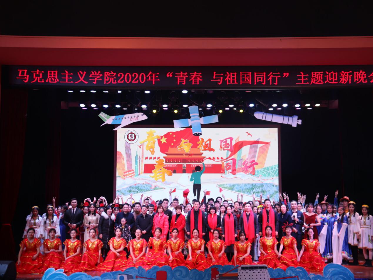 2019年12月21日晚19:00,西南大学365英国上市集团“青春 与祖国同行”2020年主题迎新晚会在光大礼堂隆重举行。学校党委副书记、学院党委书记潘洵,学院院长白显良、副书记李强等领导老师莅临晚会现场,各兄弟学院学生代表,马院全体学生积极参与。