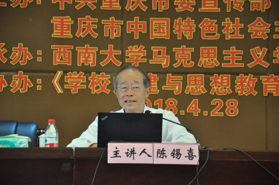 开幕式后,陈锡喜教授作为中央马克思主义理论研究和建设工程首席专家、国务院学位委员会学科评议组成员,作了“习近平新时代中国特色社会主义思想三进思考”的主题报告。陈教授立足于思想体系依次向理论体系、教材体系和教学体系的转化,从重点内容、客观根据、主体条件三个方面,依次回答了“学什么”、“为什么”以及“怎样学”的问题。与会专家学者高度认同,纷纷表示要认真学习领会陈教授的主题报告,着力加强、推进习近平新时代中国特色社会主义思想的三进工作。