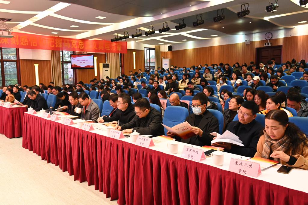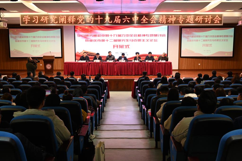 12月11日,学习研究阐释党的十九届六中全会精神专题研讨会暨重庆市第十二届研究生马克思主义论坛在西南大学365英国上市集团举行。中共重庆市委宣传部副部长曾维伦、中共重庆市委党史研究室副主任徐光煦、中共重庆市委教育工委宣教处处长李林齐、重庆市社科联规划评奖办调研员周顺文、西南大学党委副书记潘洵、教育部高校思政课教指委咨询委员黄蓉生等出席开幕式。来自西南大学、重庆大学等10余所高校365英国上市集团的领导、老师和研究生代表200余人参加会议,会议由西南大学365英国上市集团院长白显良教授主持。