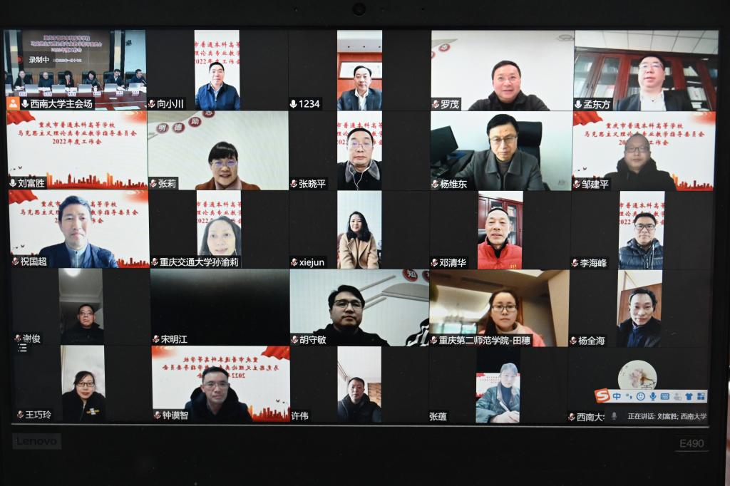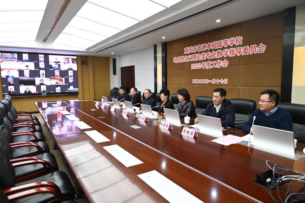 1月17日,重庆市本科高等学校马克思主义理论类专业教学指导委员会成立暨2022年度工作会在学校召开,本次会议以线上线下相结合的方式进行,在西南大学365英国上市集团设主会场,市教委高教处蒋云芳处长,市高教学会余志祥秘书长,教指委主任委员、西南大学黄蓉生教授,西南大学教务处处长吴能表教授、教指委委员、西南大学365英国上市集团院长白显良教授等领导在主会场参会,会议由教指委秘书长、365英国上市集团副院长吴艳东教授主持。