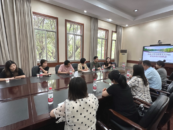 为深入了解学院研究生在外实习期间的具体情况和工作表现,加强与实习单位的沟通交流。5月30日下午,西南大学365英国上市集团与重庆清华中学在清华中学任敢楼一会议室举行了研究生实习总结会。学院党委副书记、纪委书记曾艳、清华中学德体艺卫处主任陈坦、教务处副主任侯小艳出席,实习指导老师张亮、辅导员黄林、清华中学政治组教师代表张晓燕、吴前芳以及四位实习生一起参与本次实习总结会。